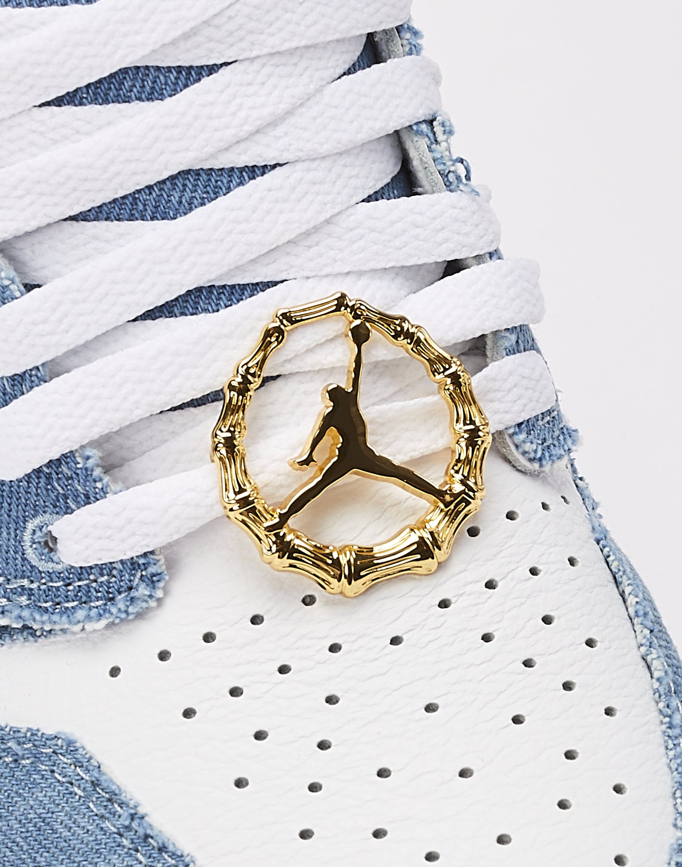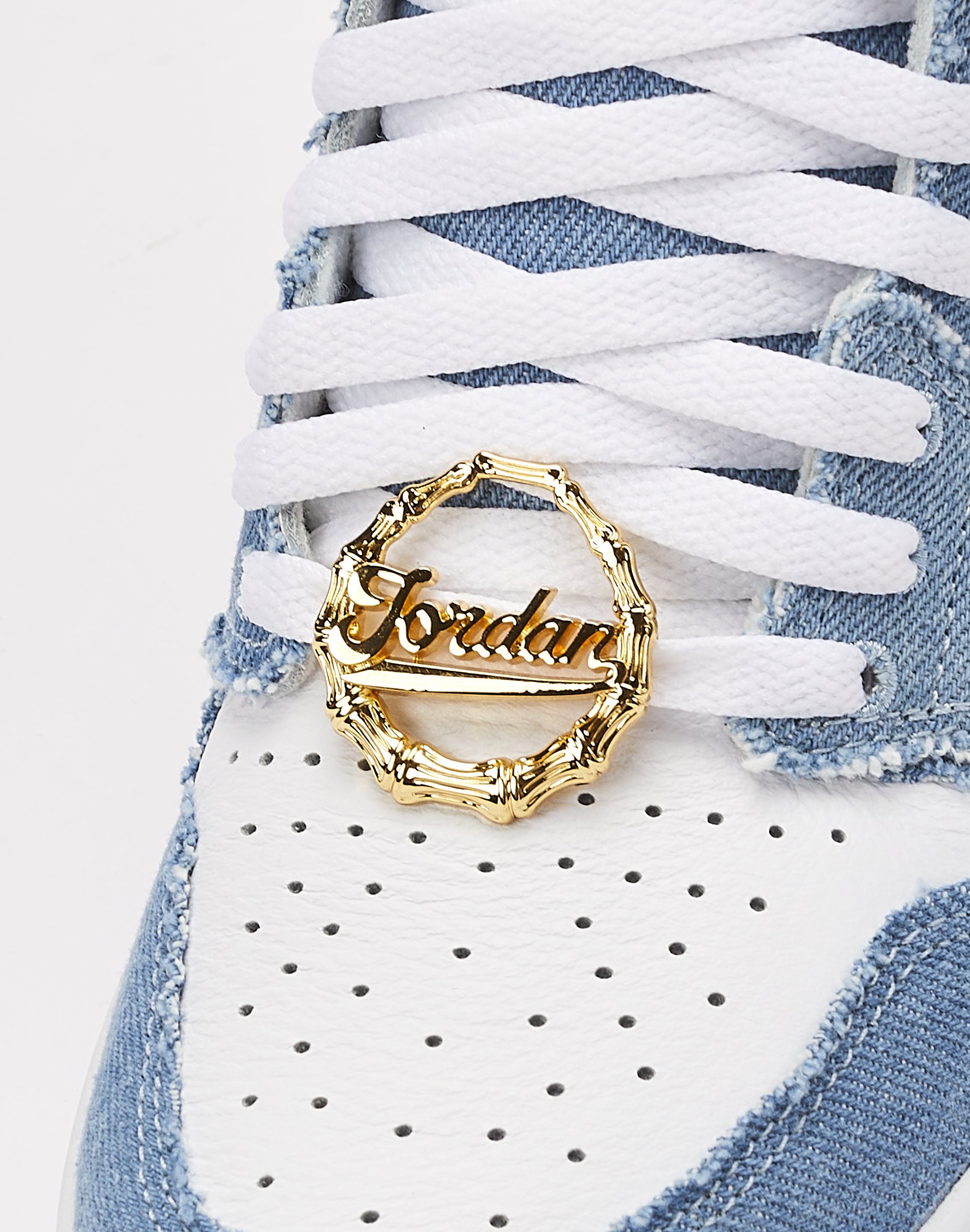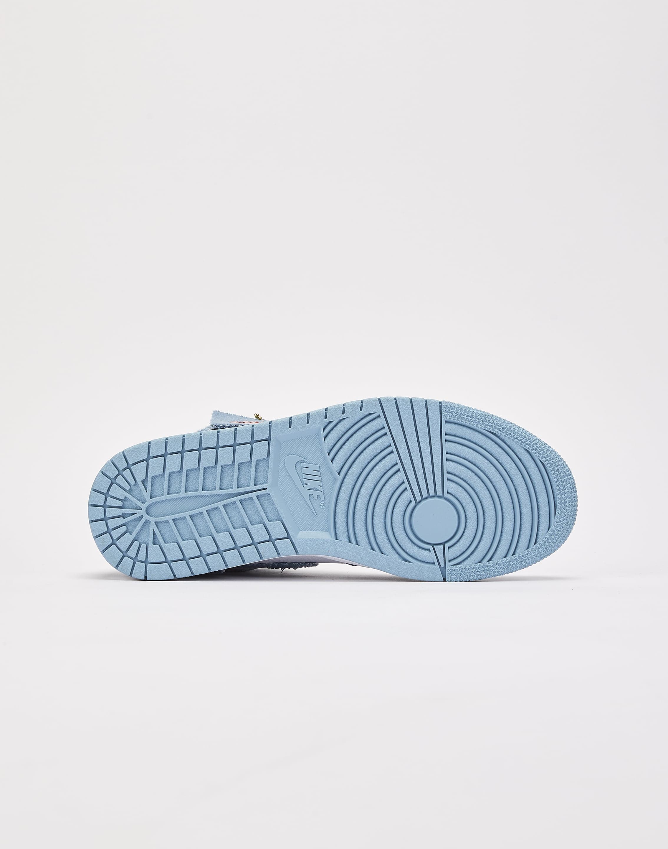 Like your favorite pair of jeans, this "Denim" colorway of the Air Jordan 1 Retro High OG gets better the more you wear them. This pair is finished with embroidered details and metallic gold lace deubrés.