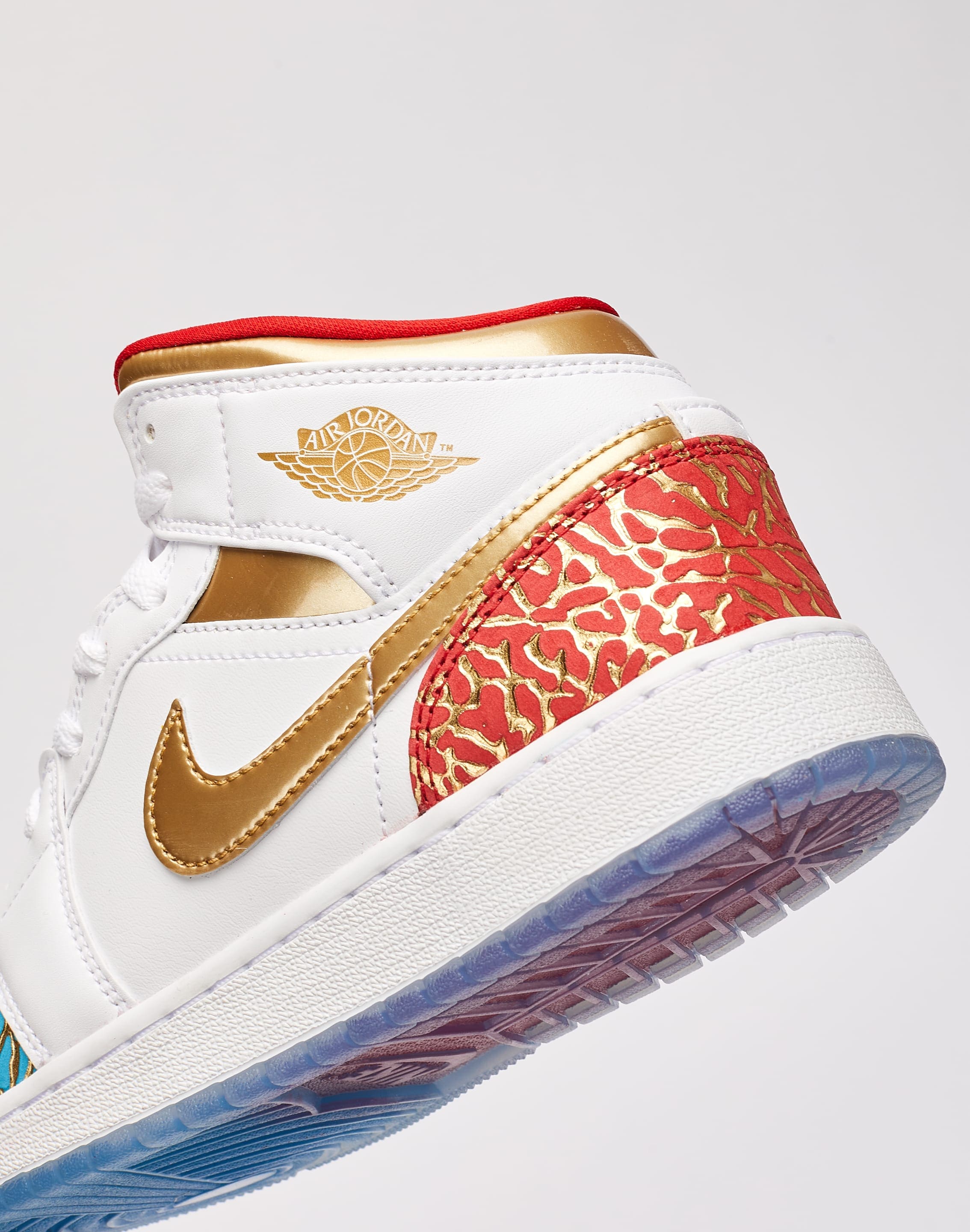 It's the silhouette you know and love, now in a kid-friendly mid-cut form. This grade-school version of the Air Jordan 1 Mid features a smooth leather upper with "Metallic Gold" elephant-print overlays.