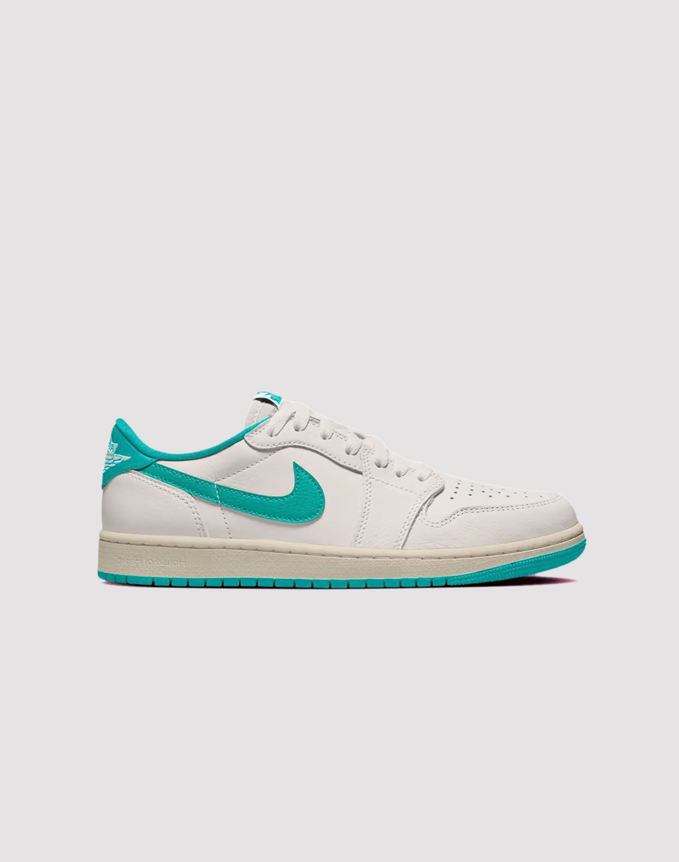 The Air Jordan 1 Retro Low OG "Washed Teal" reimagines MJ's iconic first signature sneaker with updated colors and premium textures in a sleek low-top design. Featuring the classic Wings logo on the heel and Nike Air branding on the tongue, this colorway delivers a fresh twist on a timeless favorite.