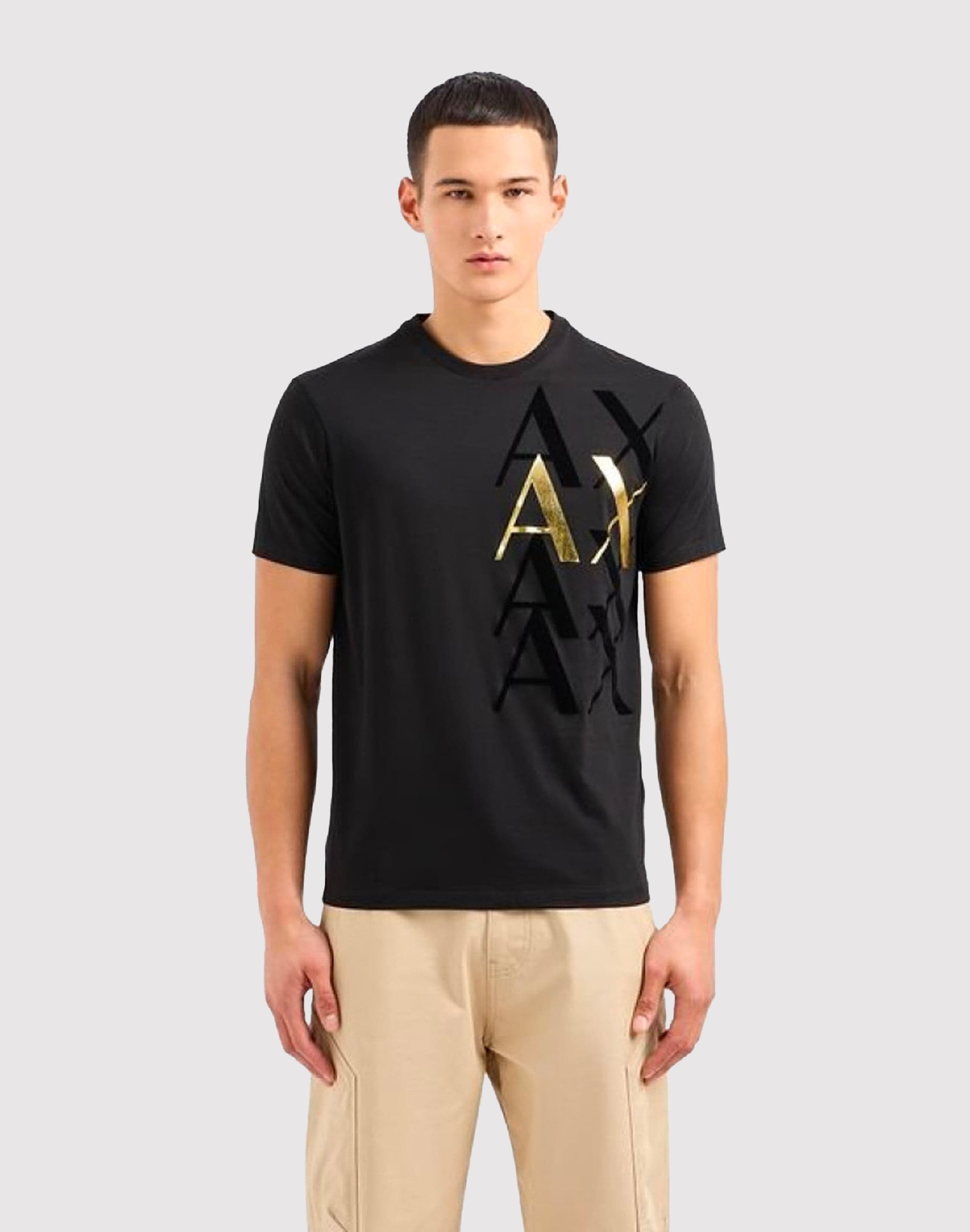 Equipped with metallic-gold Armani Exchange graphics, this men's T-shirt is a must-have in your rotation. It's crafted from soft, lightweight cotton for comfortable wear in any weather.