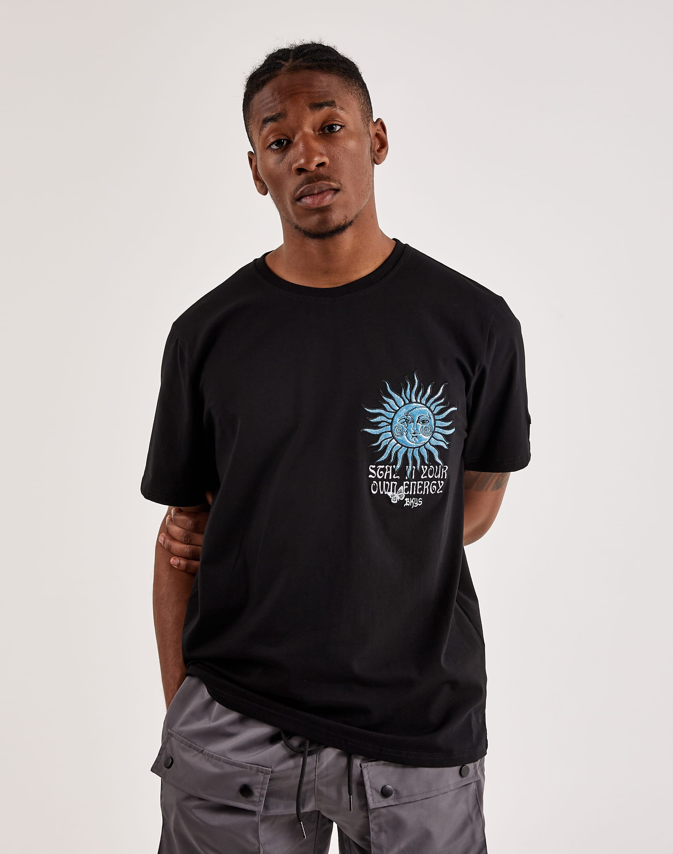 Keep the vibes high with the Energy Tee from BKYS. Embroidered and printed graphics dress the front and back of this soft cotton T-shirt. Pair it with your favorite jeans or shorts for an easy everyday look.