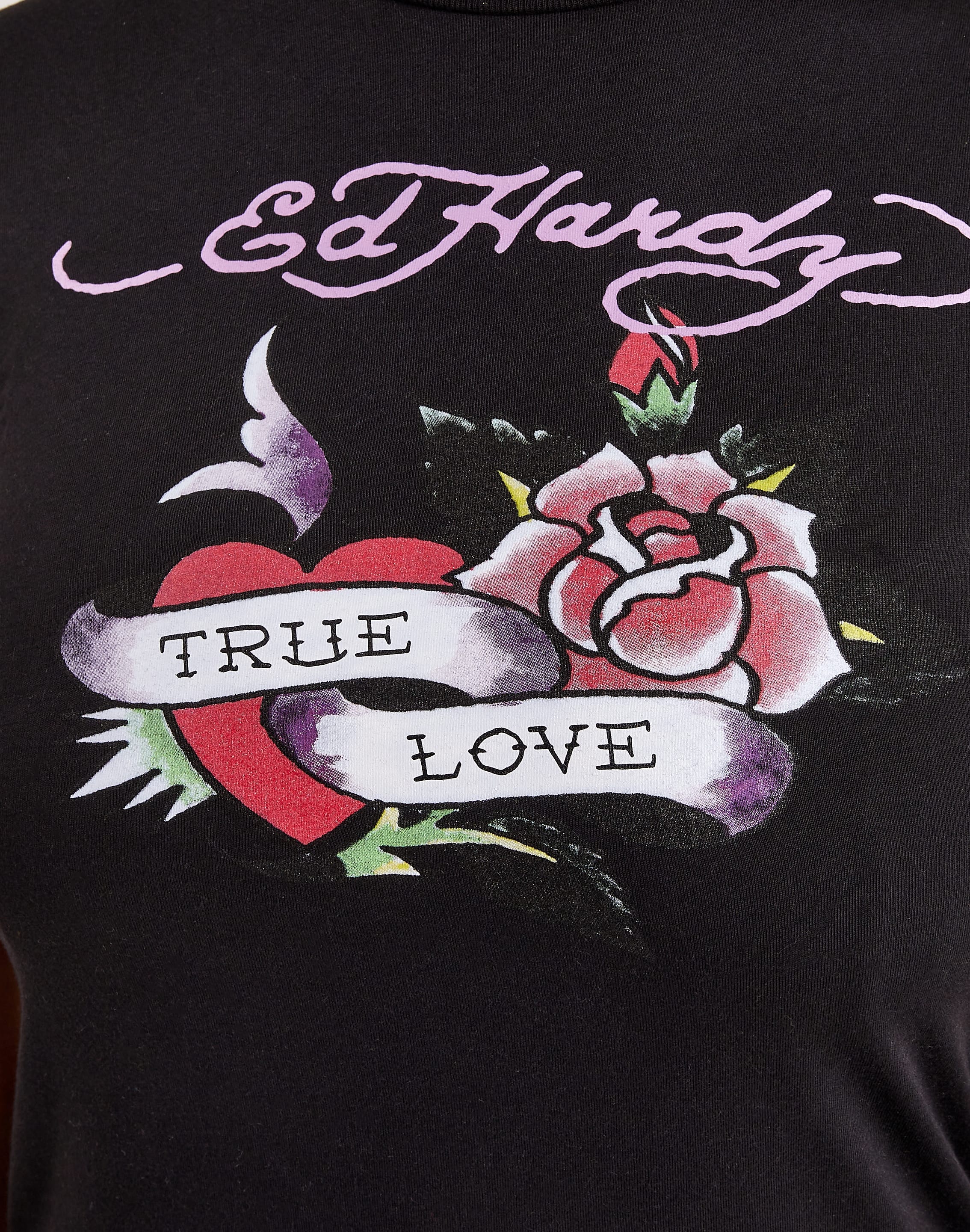 Elevate your look with the True Love Slim-Fit Tee from Ed Hardy. This women's T-shirt has a flattering fit and features tattoo-inspired graphics to help you stand out.
