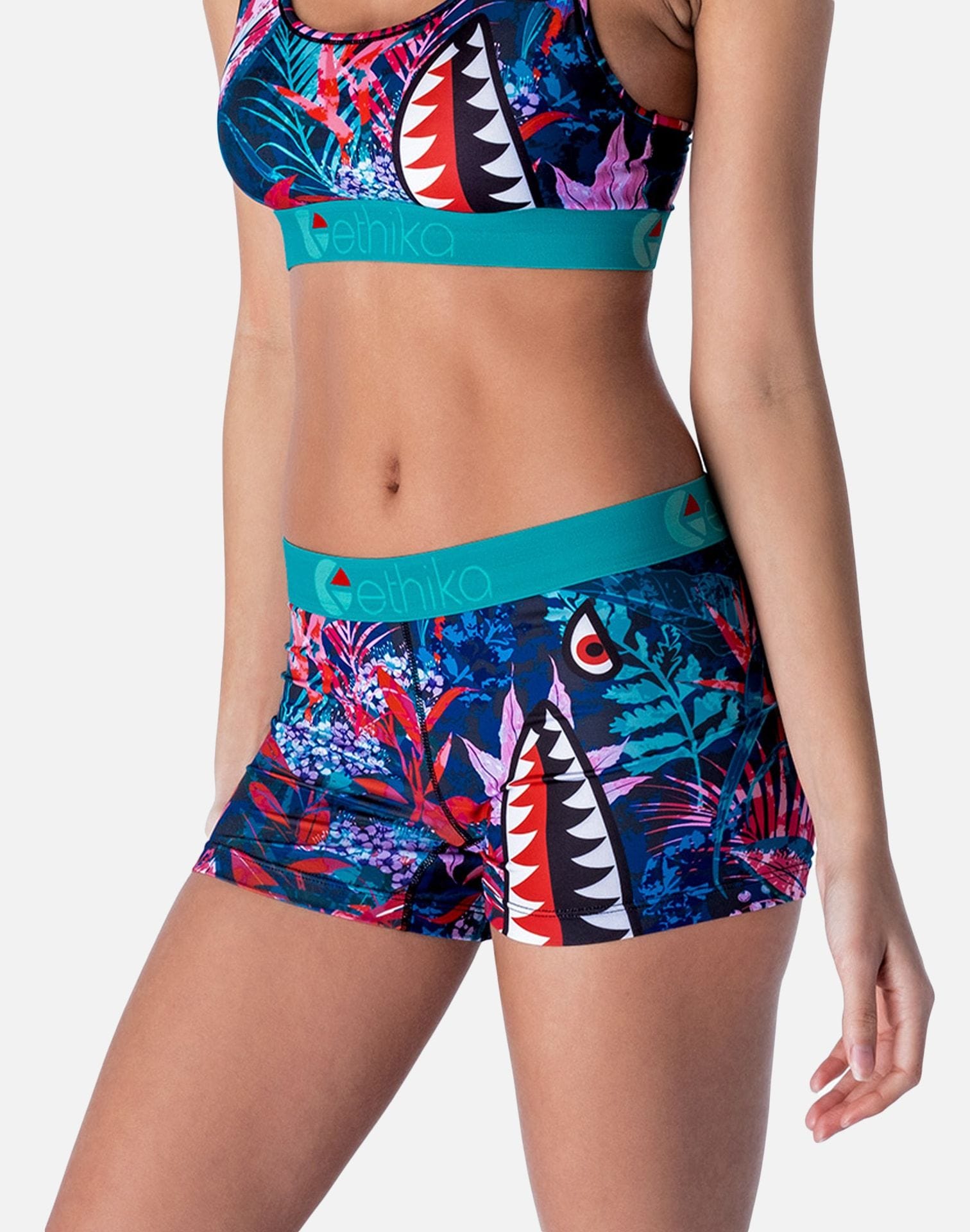 Get ready to lounge in the cute comfort of Ethika's Boy Shorts for women. The shorts offer a boy short silhouette with flatlock seams and a lightweight stretch construction.