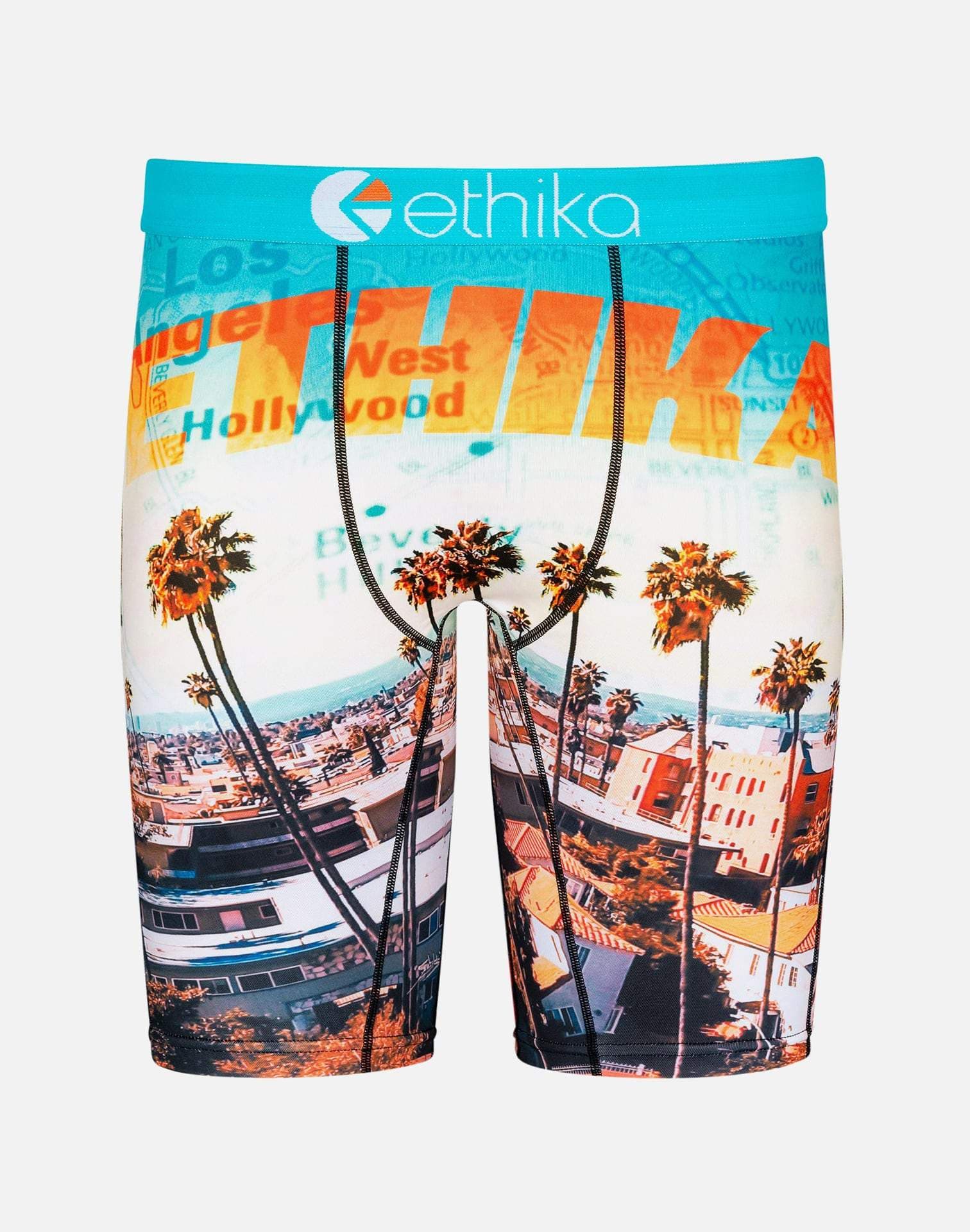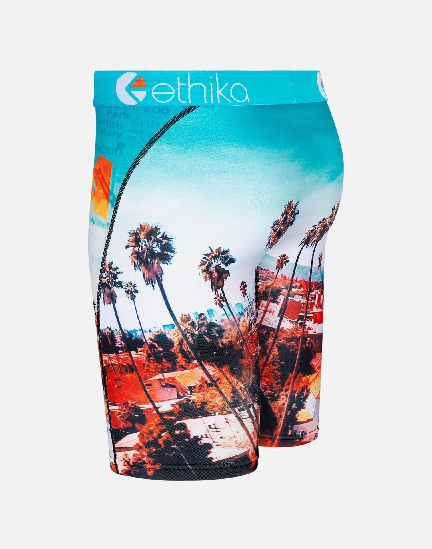 Get a comfortable pair of boxers while showing love to the City of Angels. The City Hills boxer briefs from Ethika showcase sublimated graphics throughout feature palm trees, L.A.'s skyline and wording throughout that reads "Hollywood," "Los Angeles," "West Hollywood," and more to celebrate your favorite California neighborhoods.