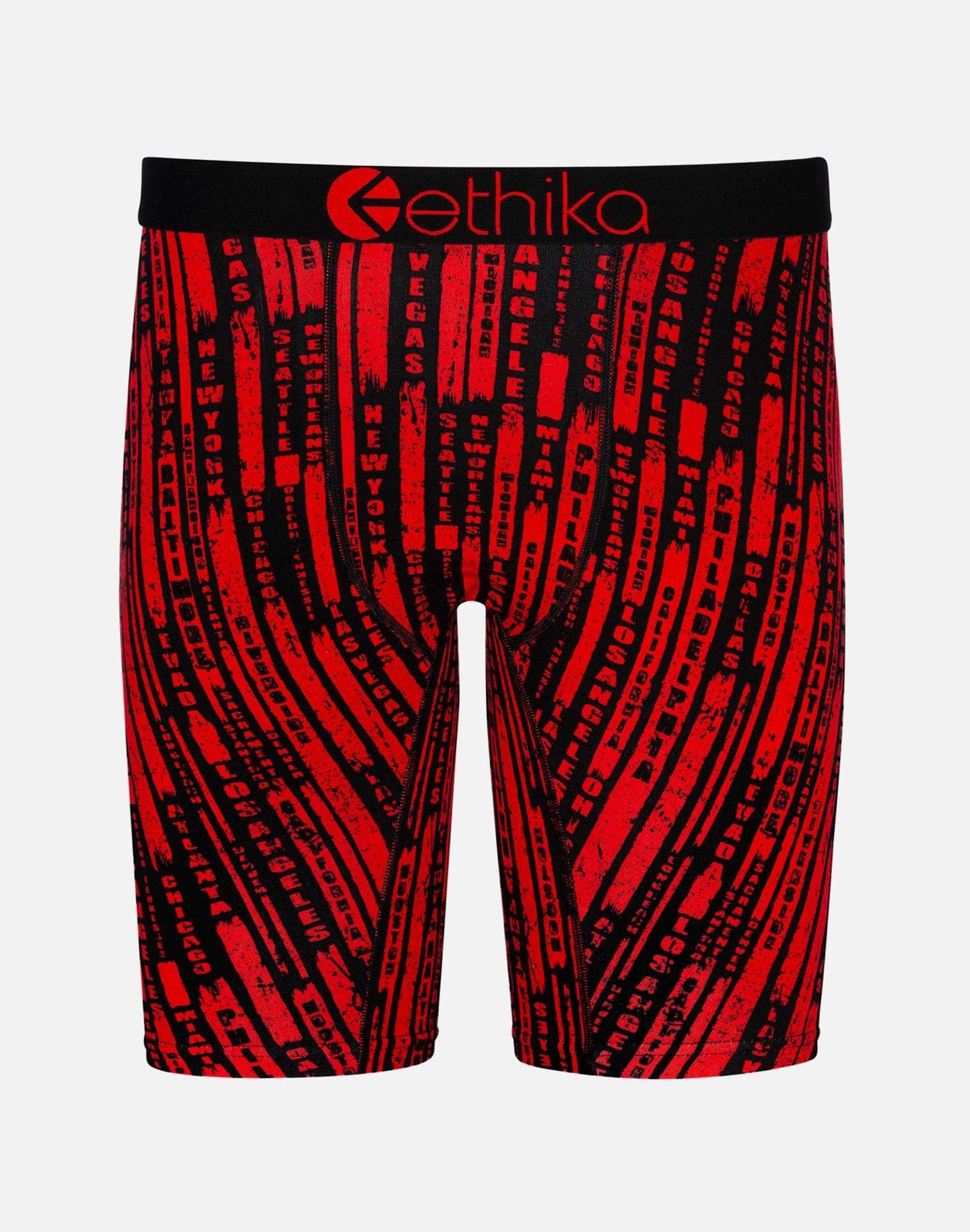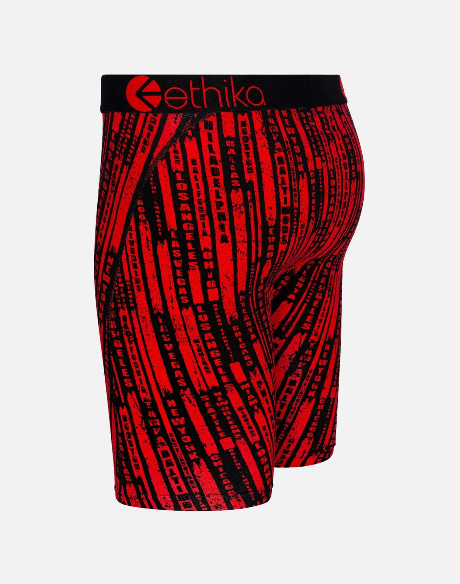 No matter what city you live in, feel at home in the City Life boxer briefs from Ethika. This ultra-comfy boxer features stripes of black and red throughout, highlighting cities including New York, Seattle, Philadelphia, and more.