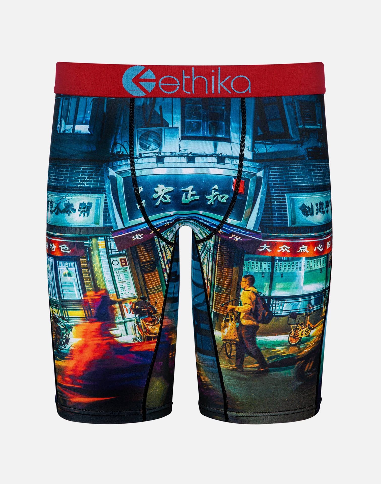 Start your style out right with the comfortable and breathable Sumimasen boxer briefs from Ethika. A creative sublimated print of a Chinatown covers these no rise boxer briefs while the flatlock seams and longer legs creates the ultimate fit.