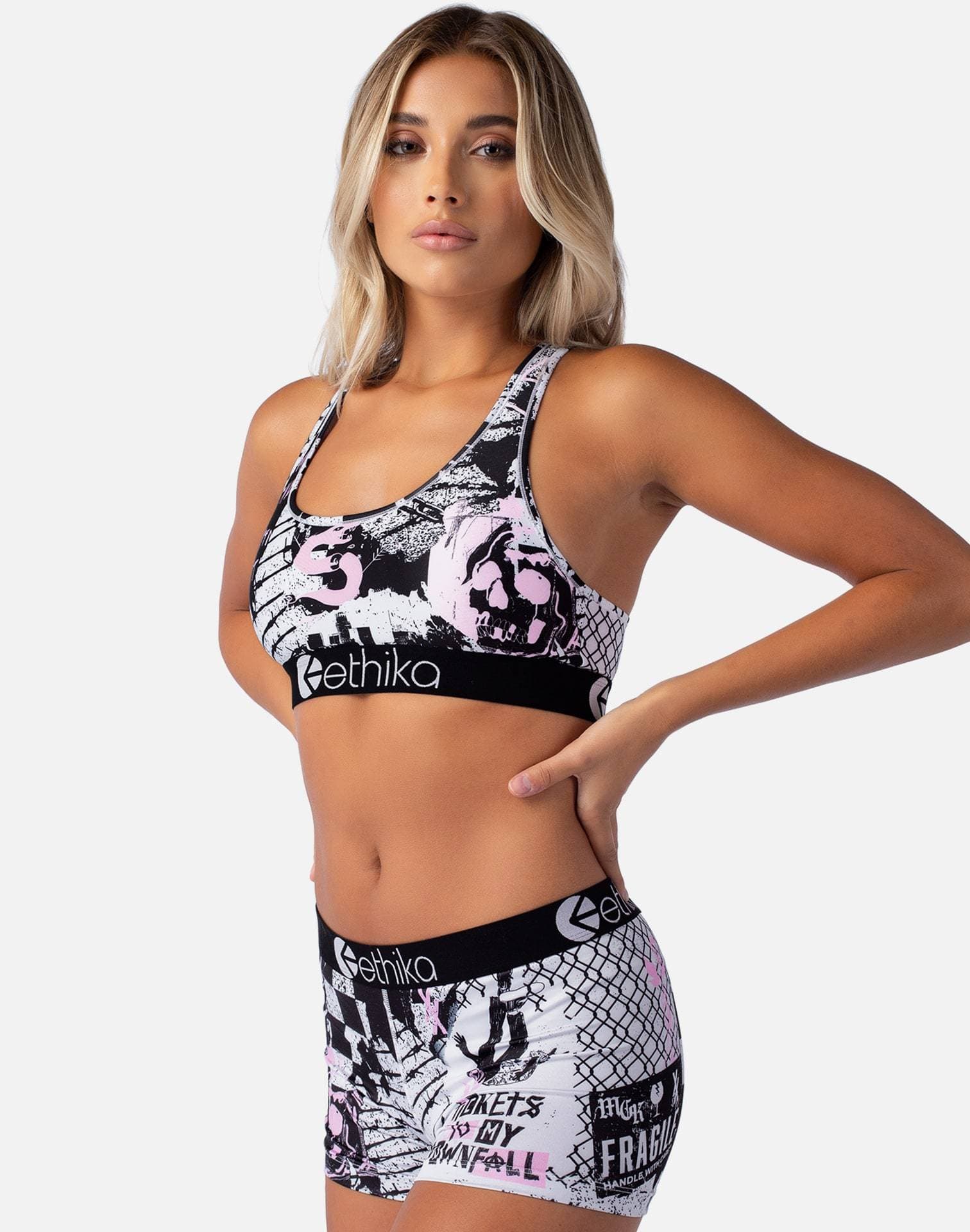 Treat yo'self with the Tickets Sports Bra from Ethika. A thick underbust band with Ethika branding throughout, along with a fixed racerback design offers medium support and comfort all day long, making the Sports bra your go-to.