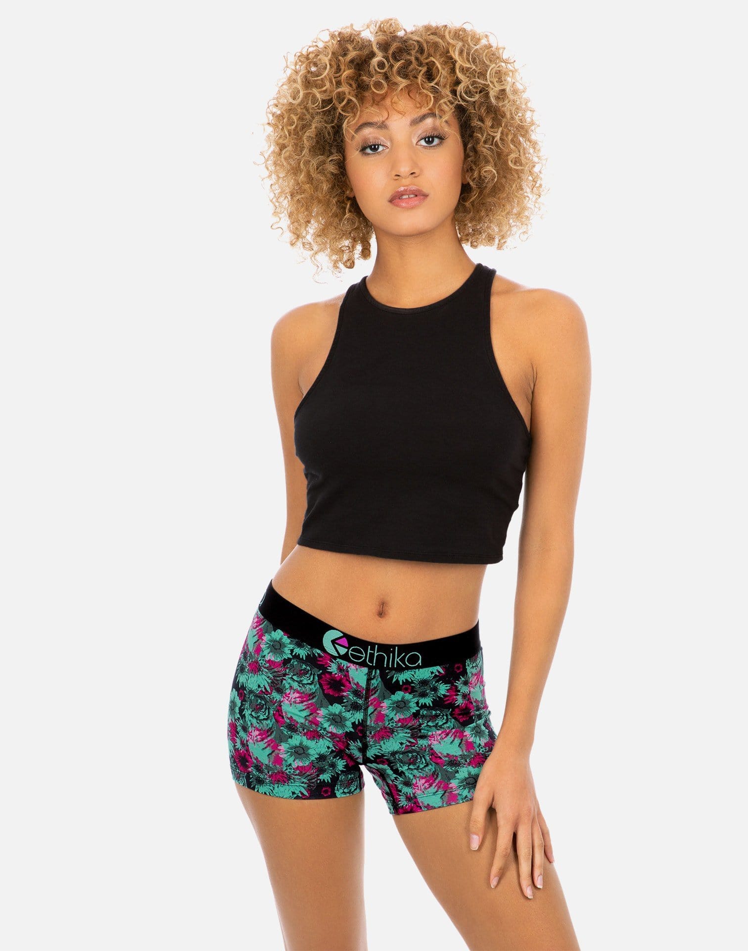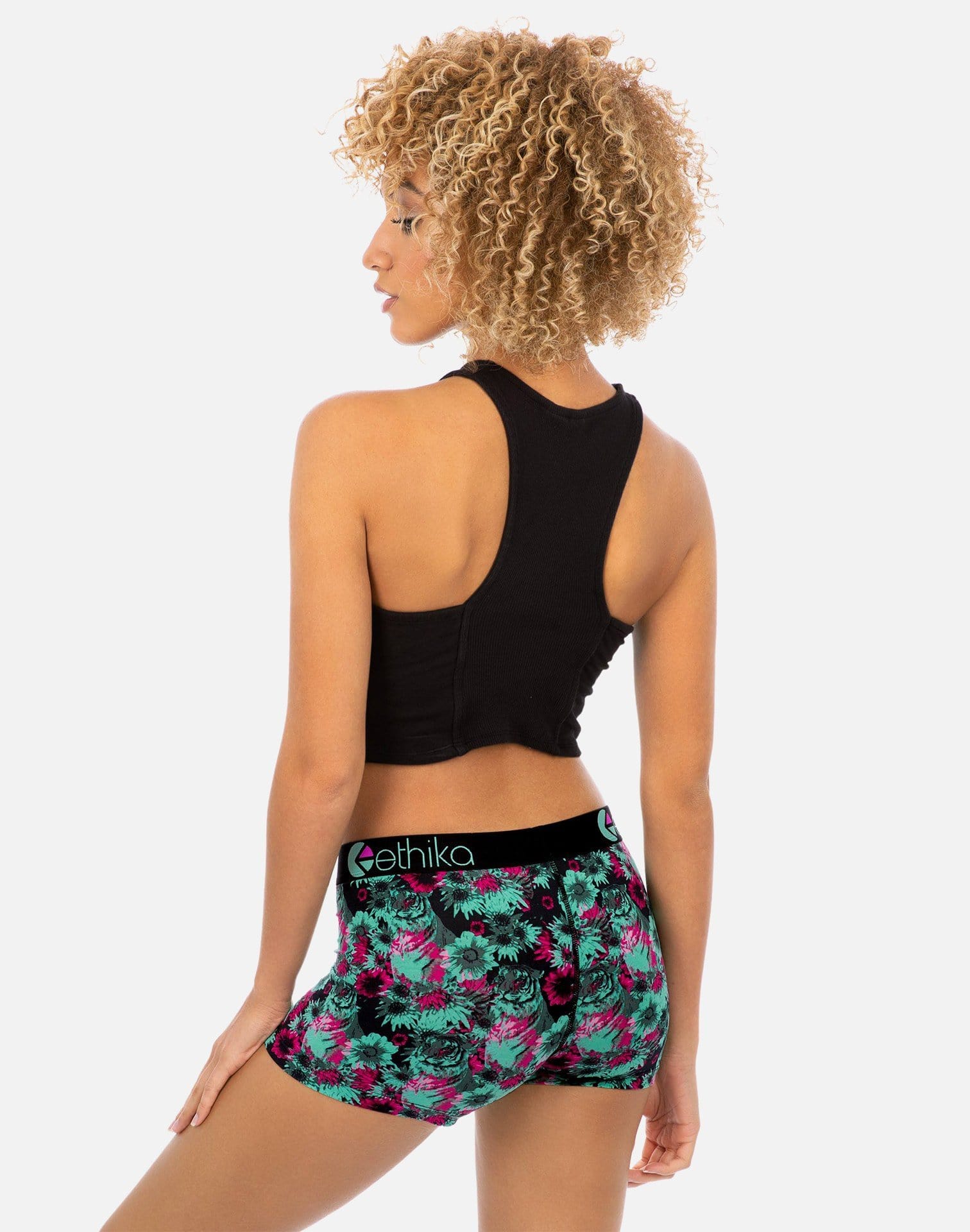 Get ready to lounge in the cute comfort of Ethika's Tiger Lily Shorts for women. The shorts offer a boy short silhouette with flatlock seams and a lightweight stretch construction.