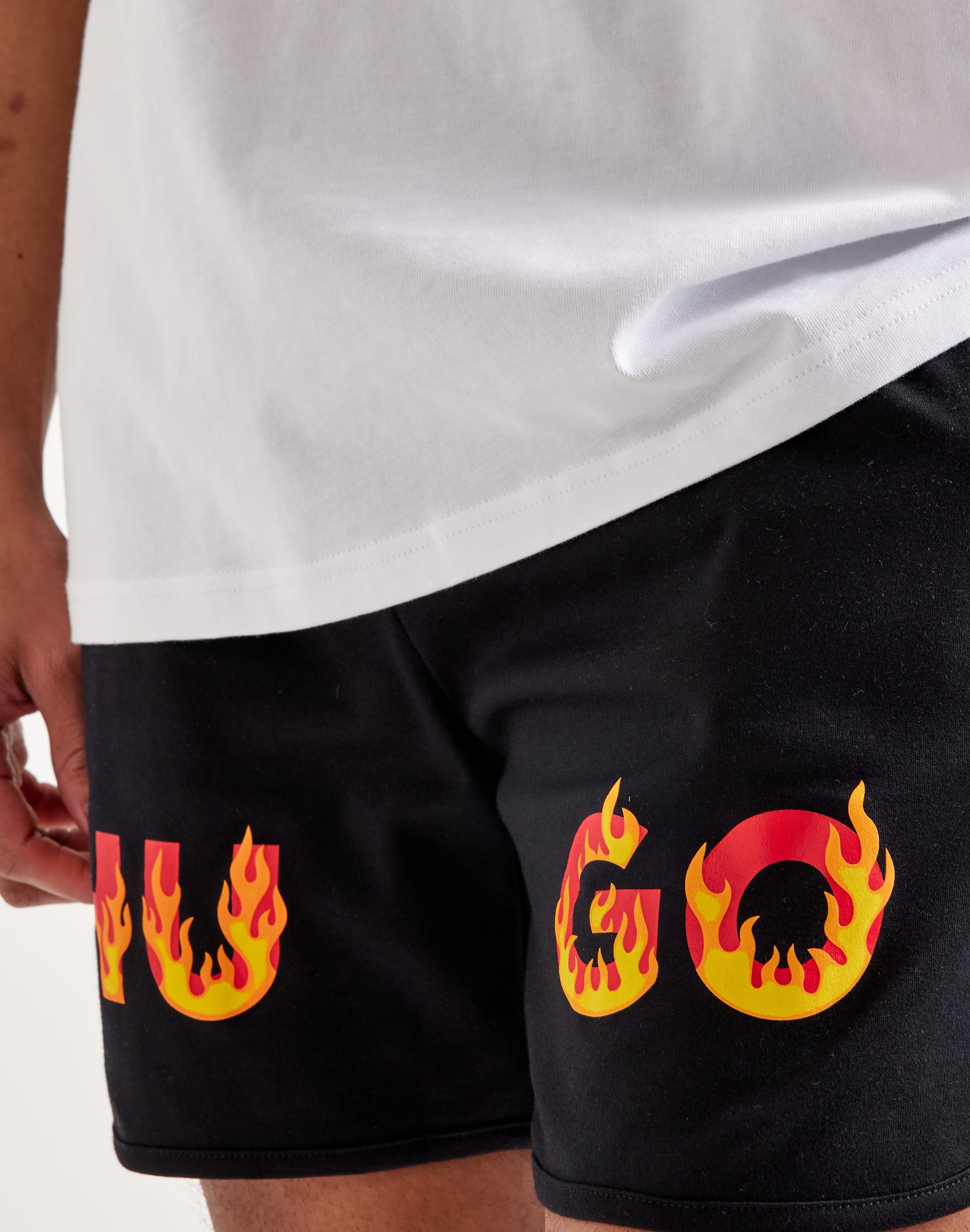 Ignite your warm-weather look with these Flames Shorts from Hugo. These lightweight woven shorts boast flame-embroiled Hugo branding front and center. Pair them with your favorite Hugo tee for an easy summertime outfit.