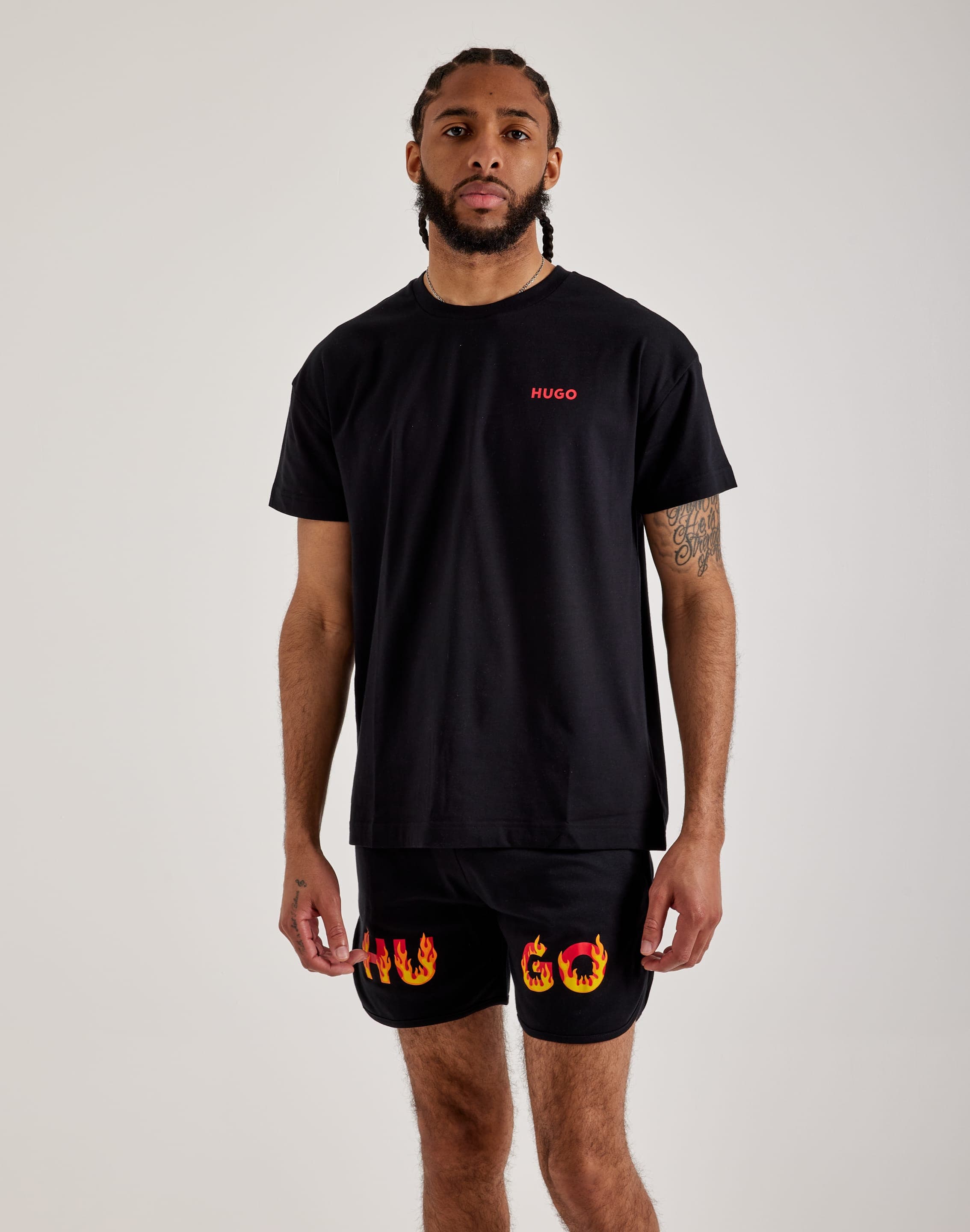 Feel the heat in Hugo's new Flames Tee. Crafted from premium cotton, this T-shirt is soft and comfortable. It features subtle Hugo branding on the chest and bold flame graphics on the back.
