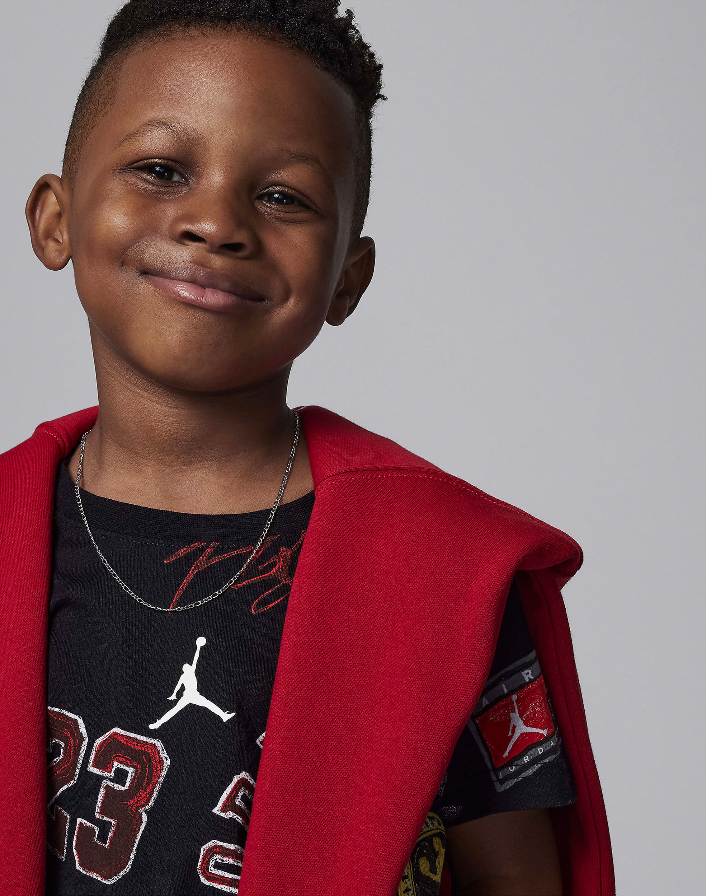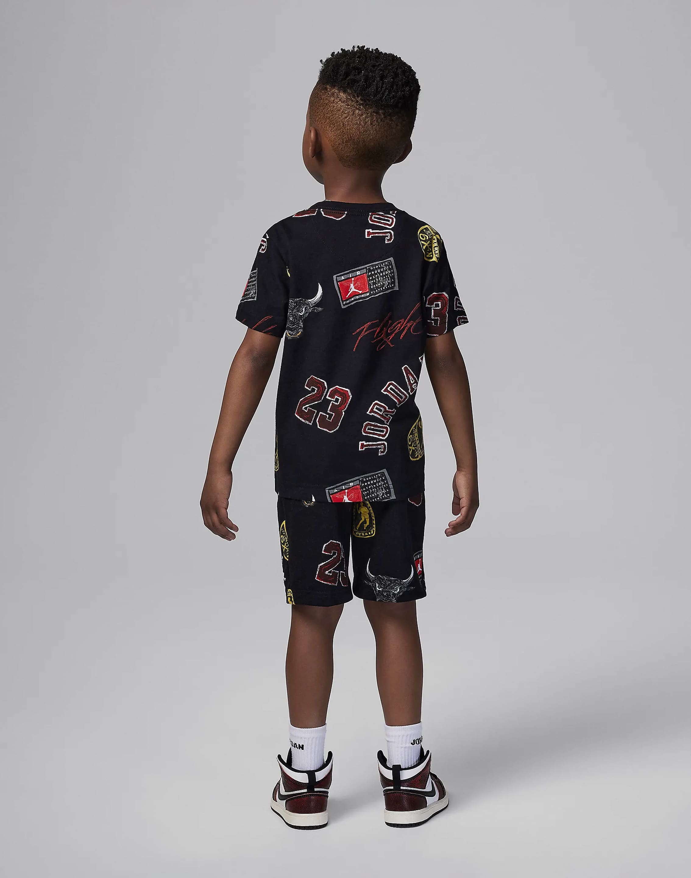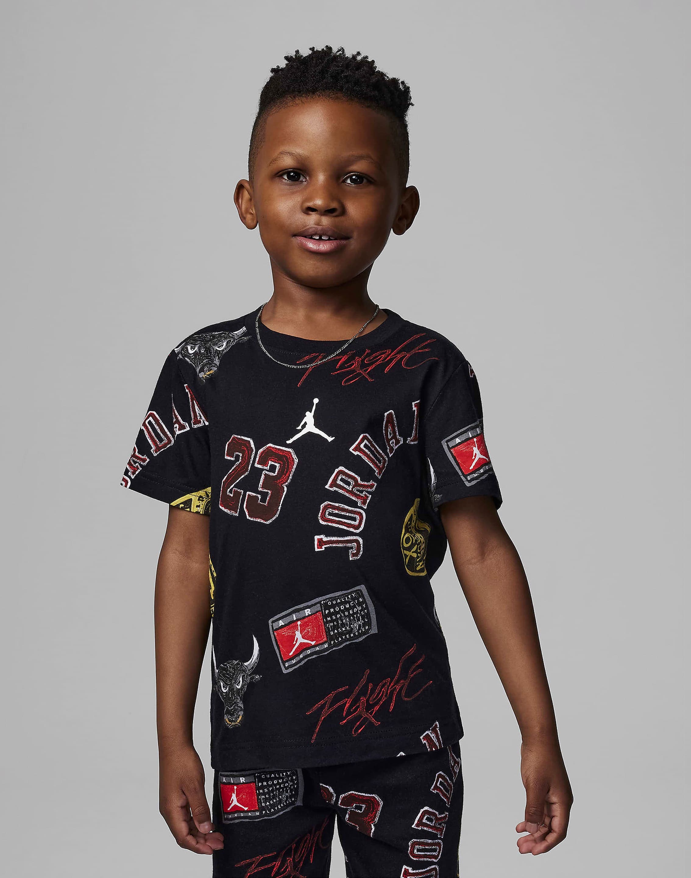 Your little one will love this 2-piece set from Jordan Brand, crafted from breathable cotton. Both the T-shirt and shorts feature an allover print design inspired by the G.O.A.T. himself.