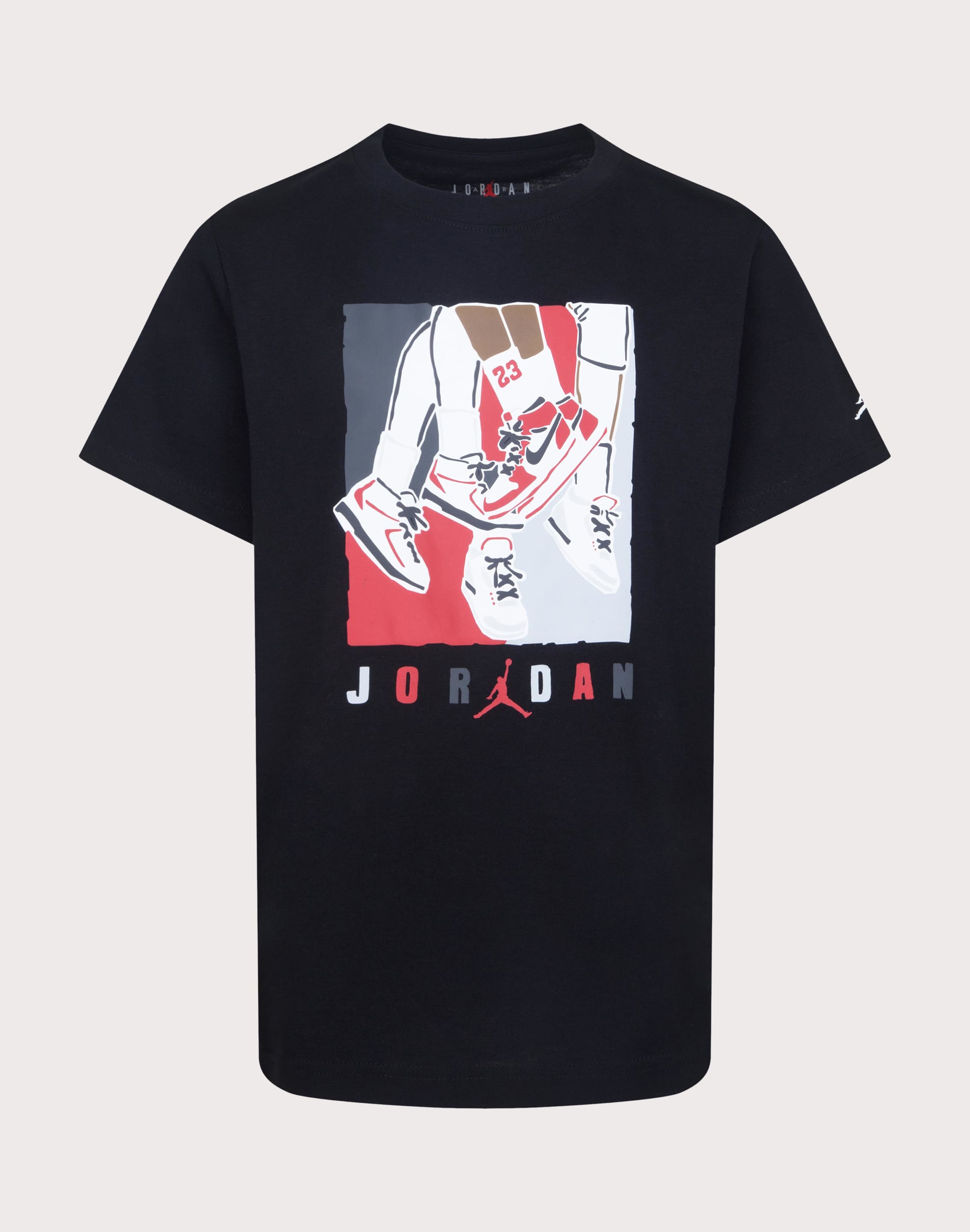 Elevate your on-court look with Jordan's new Courtyard Tee. This kids' T-shirt features a graphic inspired by the early days, with early Air Jordan models and signature Jordan lettering.