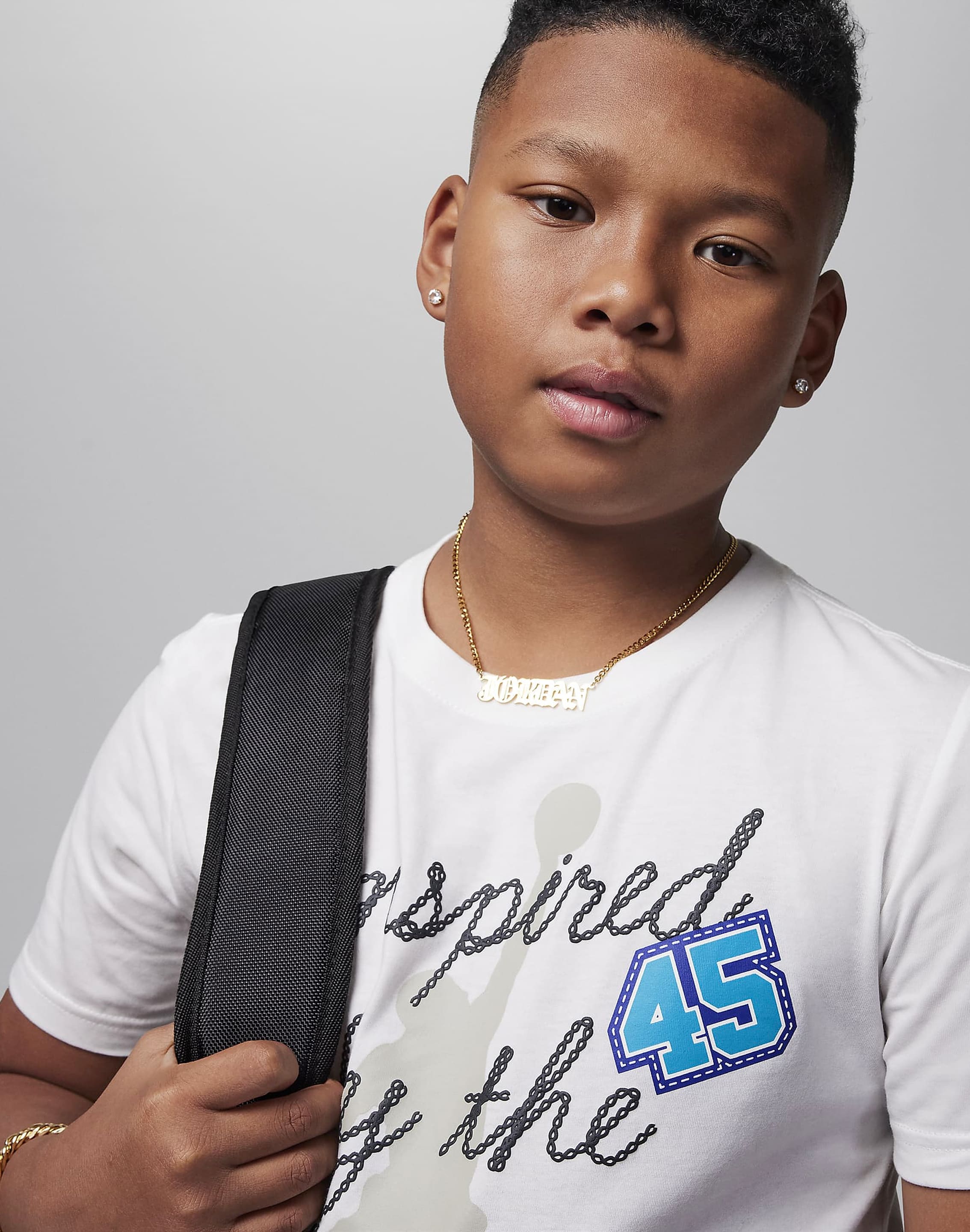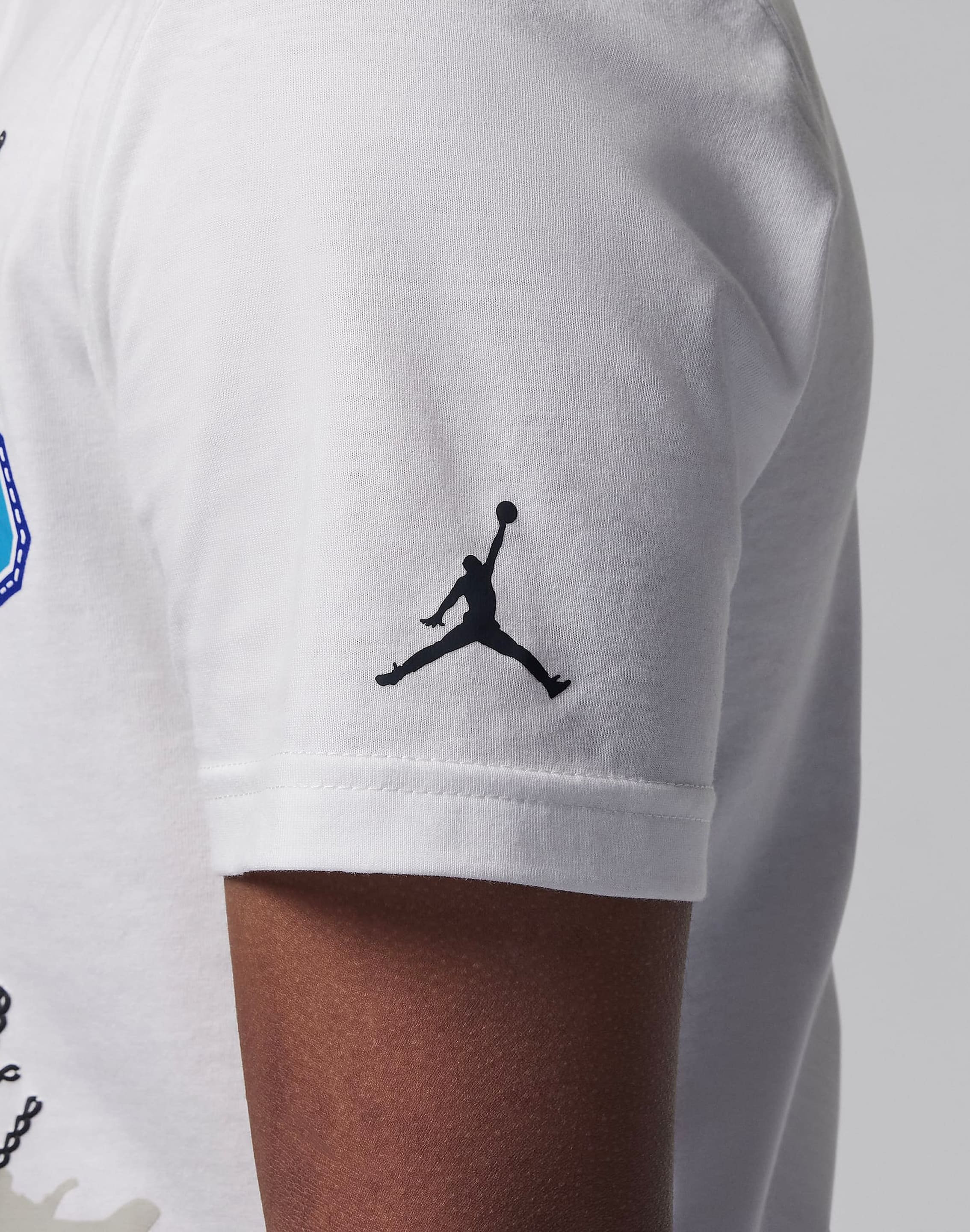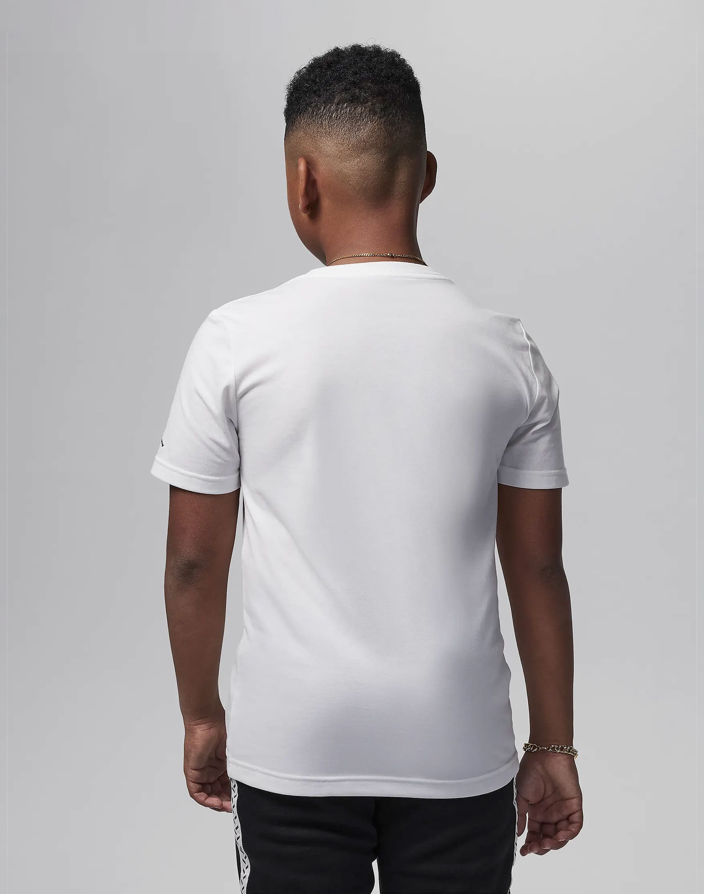 Crafted from a soft blend of cotton and polyester in a jersey knit, this kids' Jordan Graphic Tee boasts a tagless crewneck for ultimate comfort. The regular cut offers room for unrestricted movement, ensuring a comfortable experience.