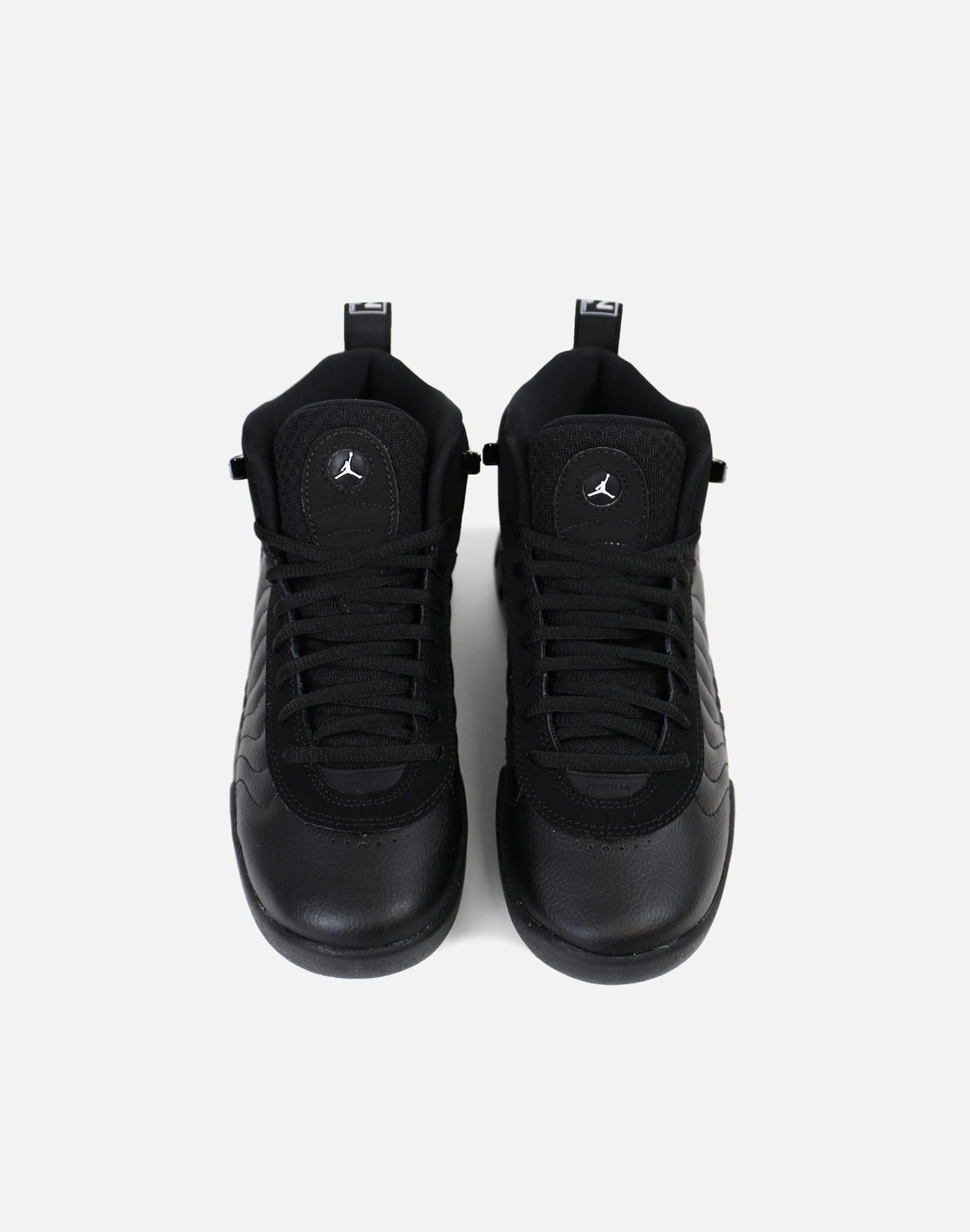 The Jordan Jumpman Pro Grade-School features its own all-black upper in full-grain leather and synthetic nubuck with a matching black outsole. The simple yet strong looks makes for one of the cleanest colorways on the court.
