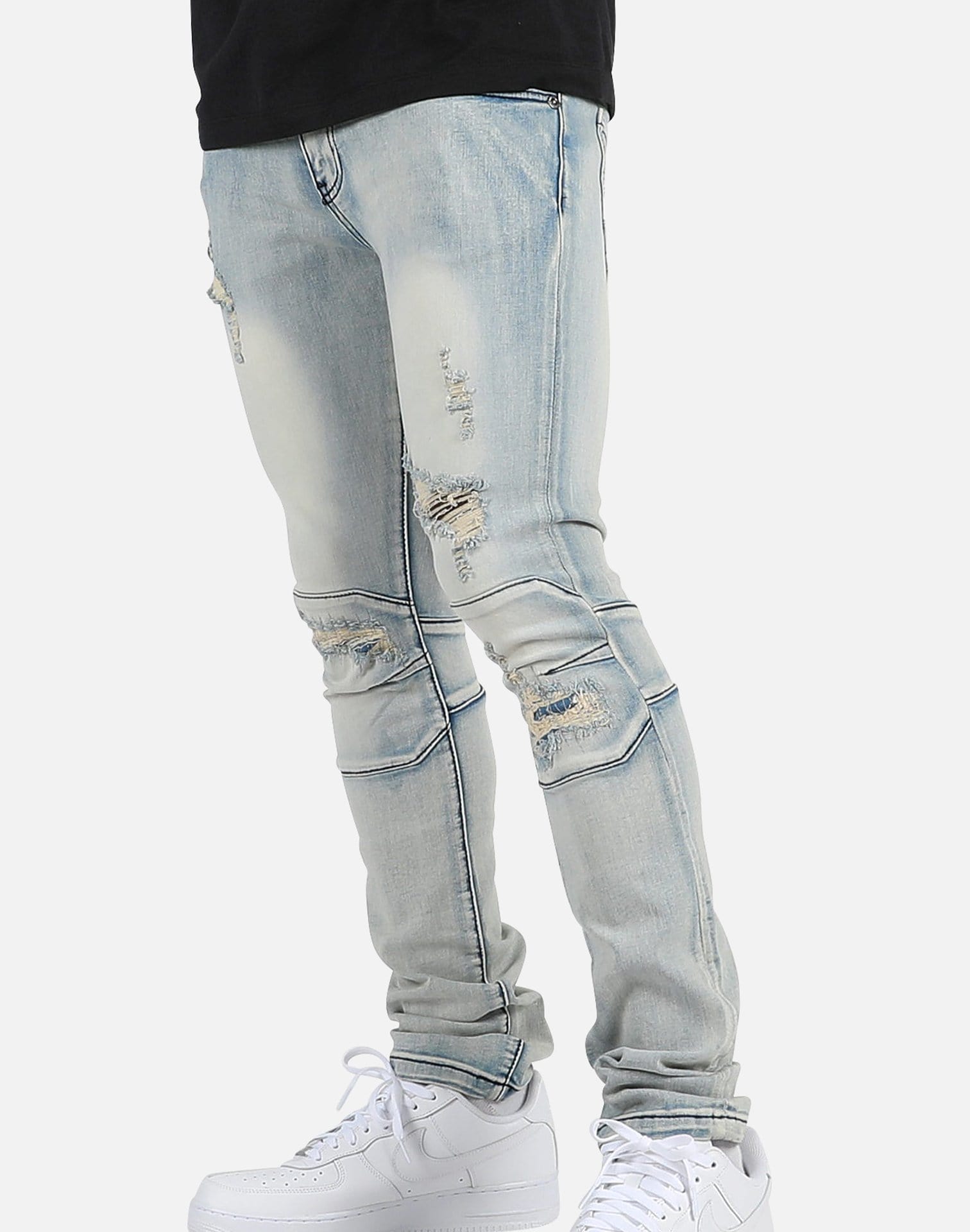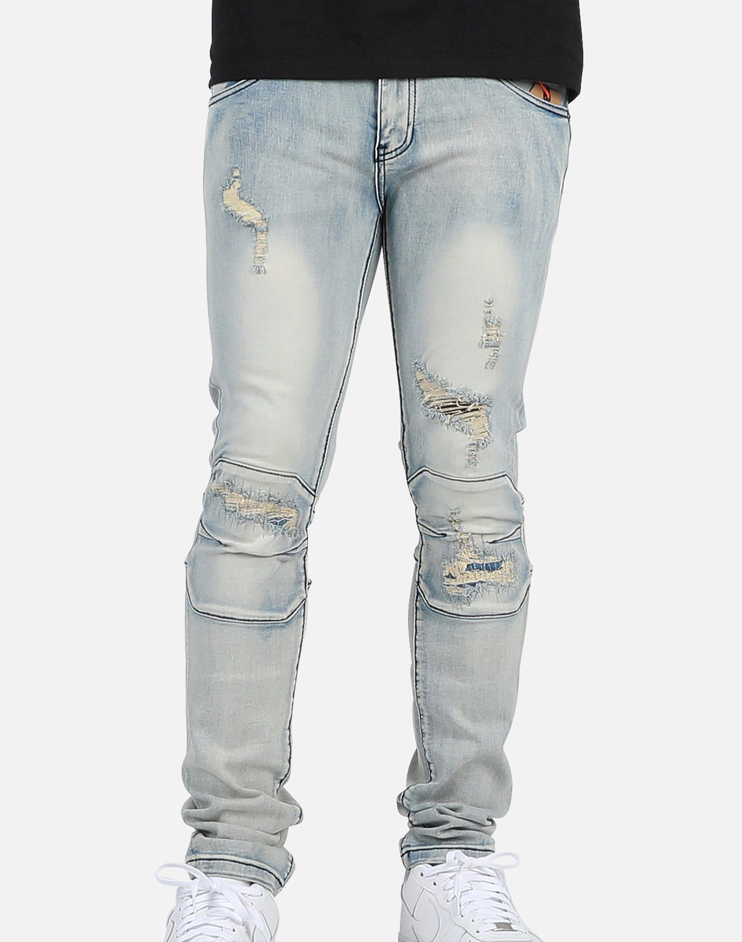 Rock your pair of Kilogram Inc. jeans with a simple graphic tee and your favorite statement kicks this season.