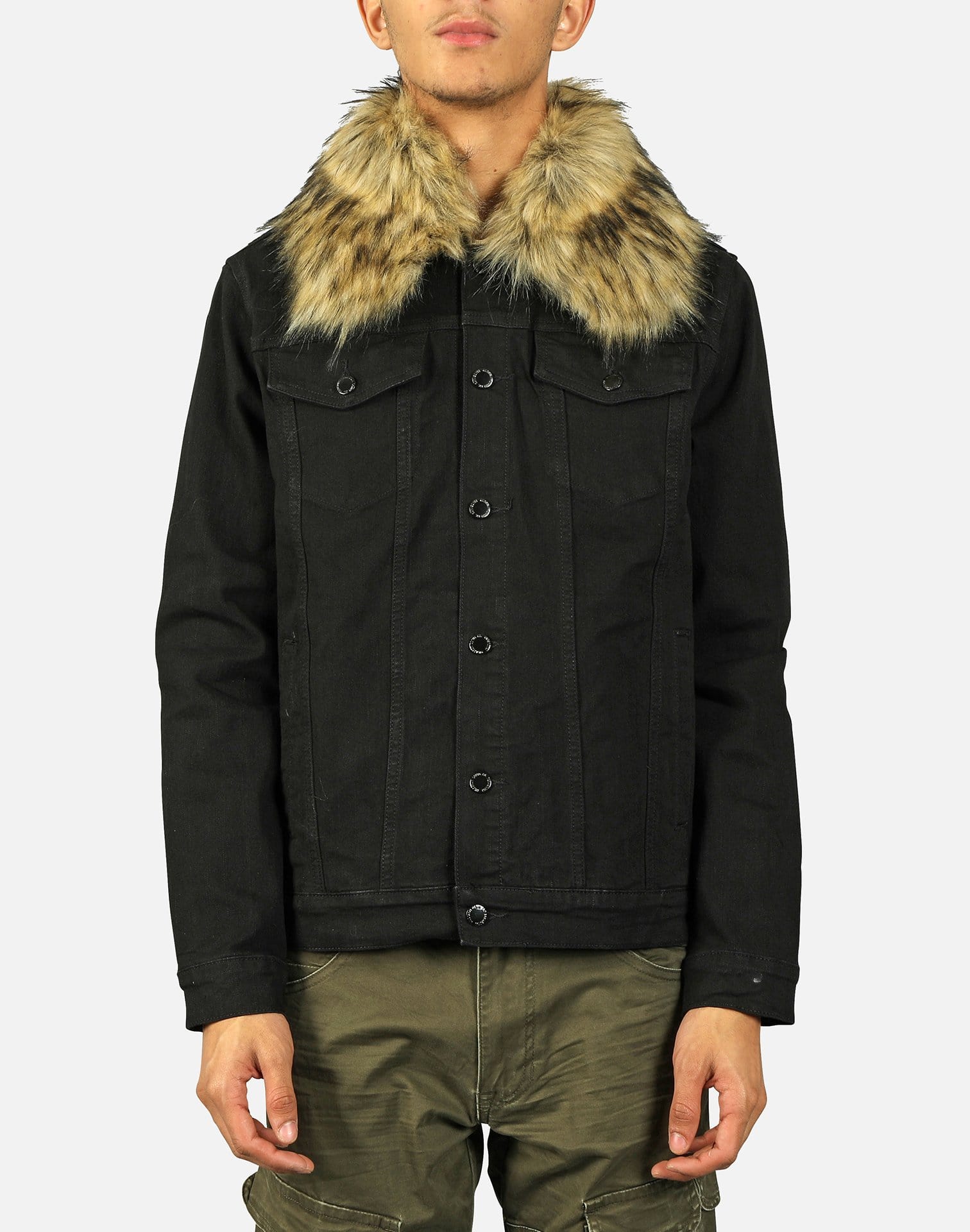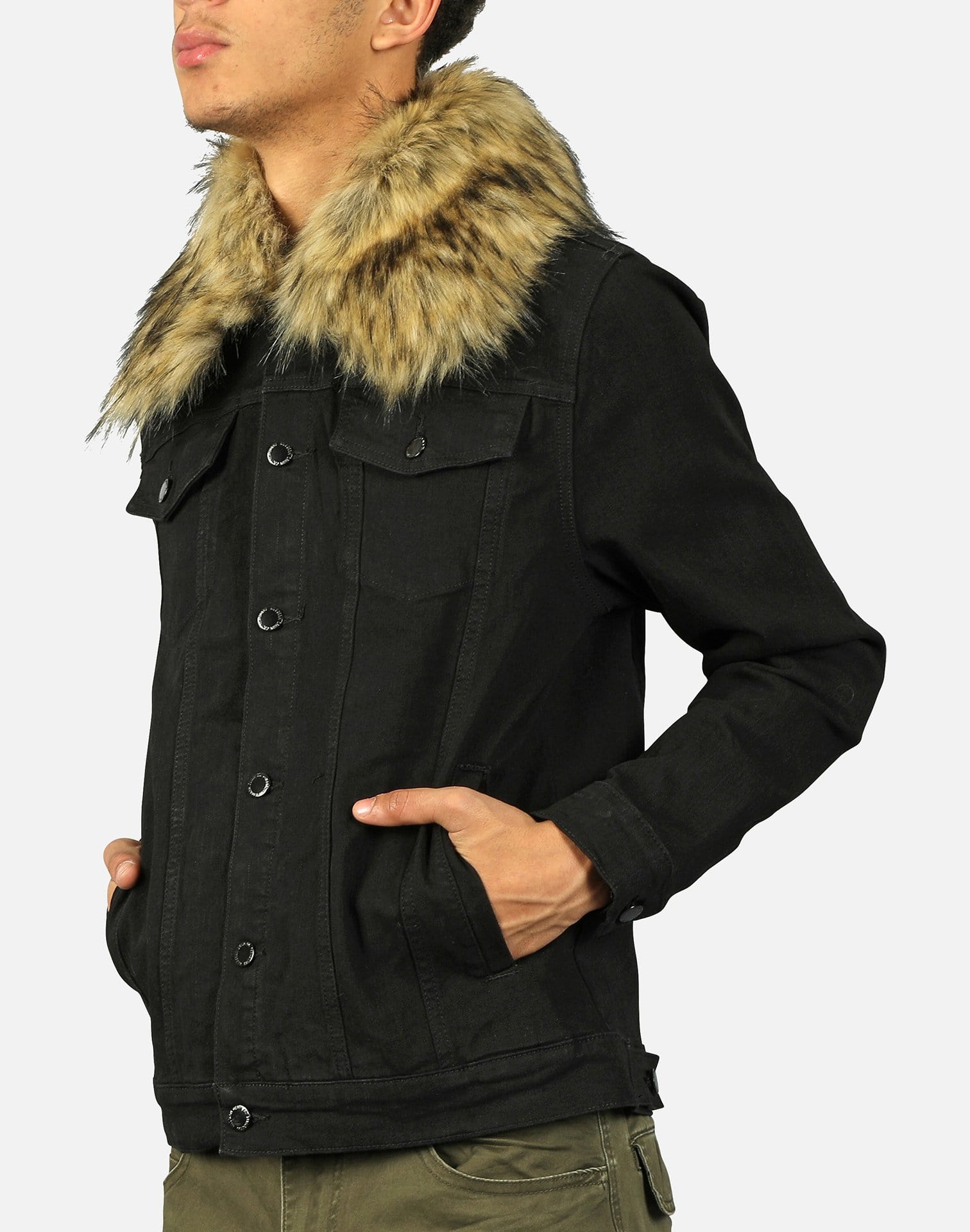 Go out in style in the Kilogram Inc. men's Short Fur Denim Jacket.