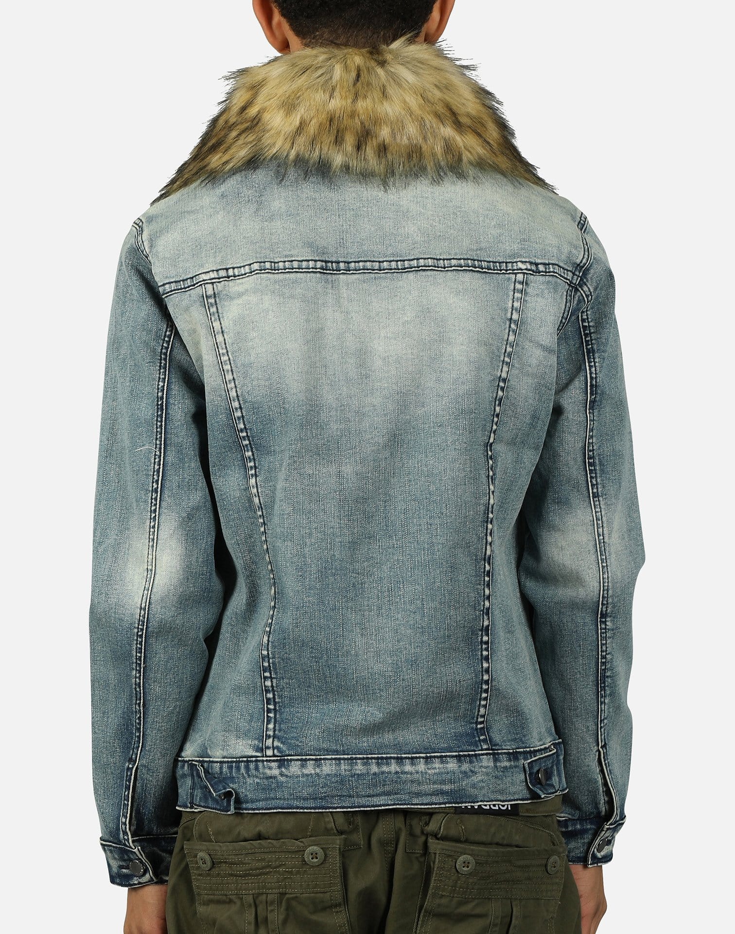 Go out in style in the Kilogram Inc. men's Short Fur Denim Jacket.