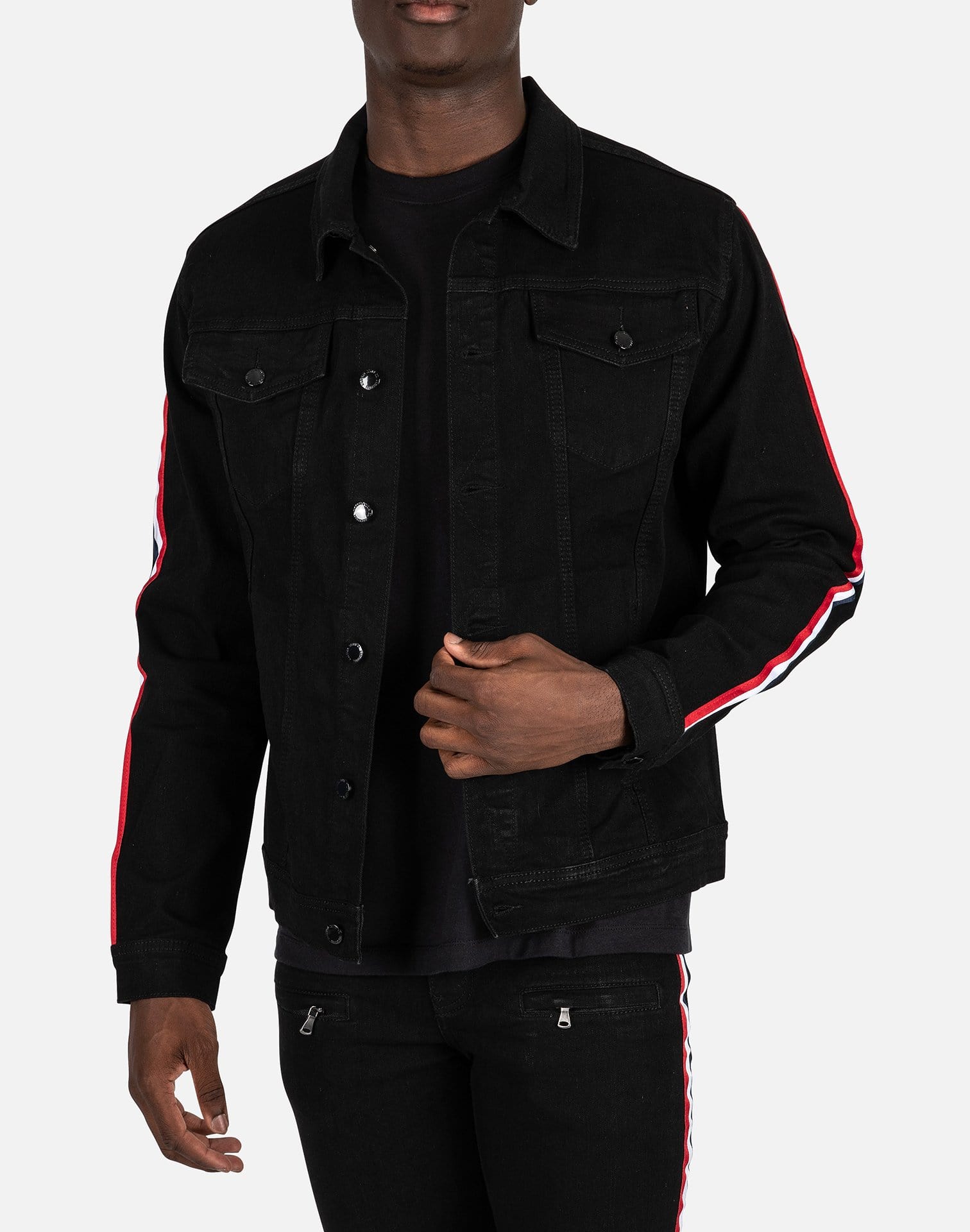 - Racer stripe design on sleeves