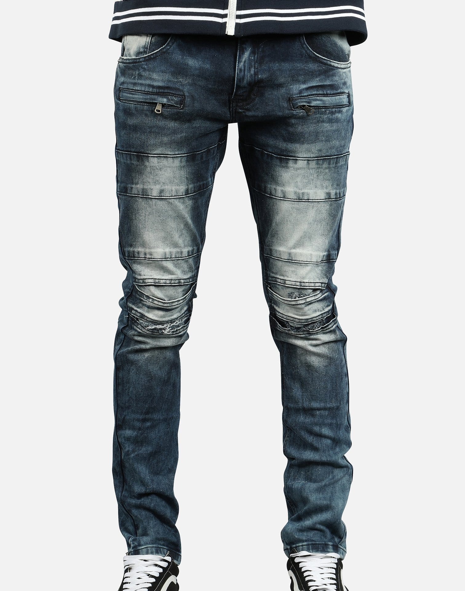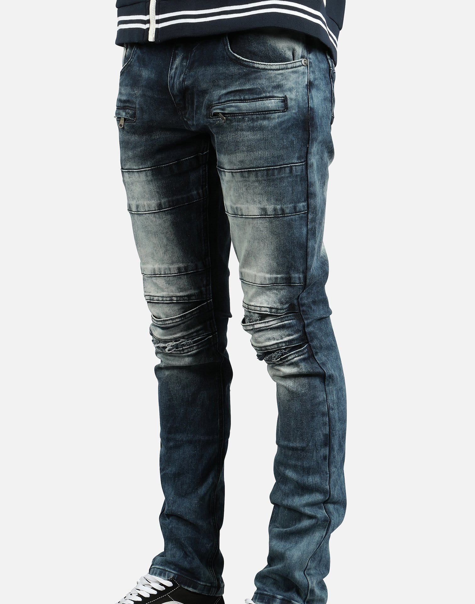 Kilogram Inc. includes a variety of denim, from biker-inspired to ripped and destructed.These Lint Tint jeans featured in black showcase rips and tears with a biker theme throughout.