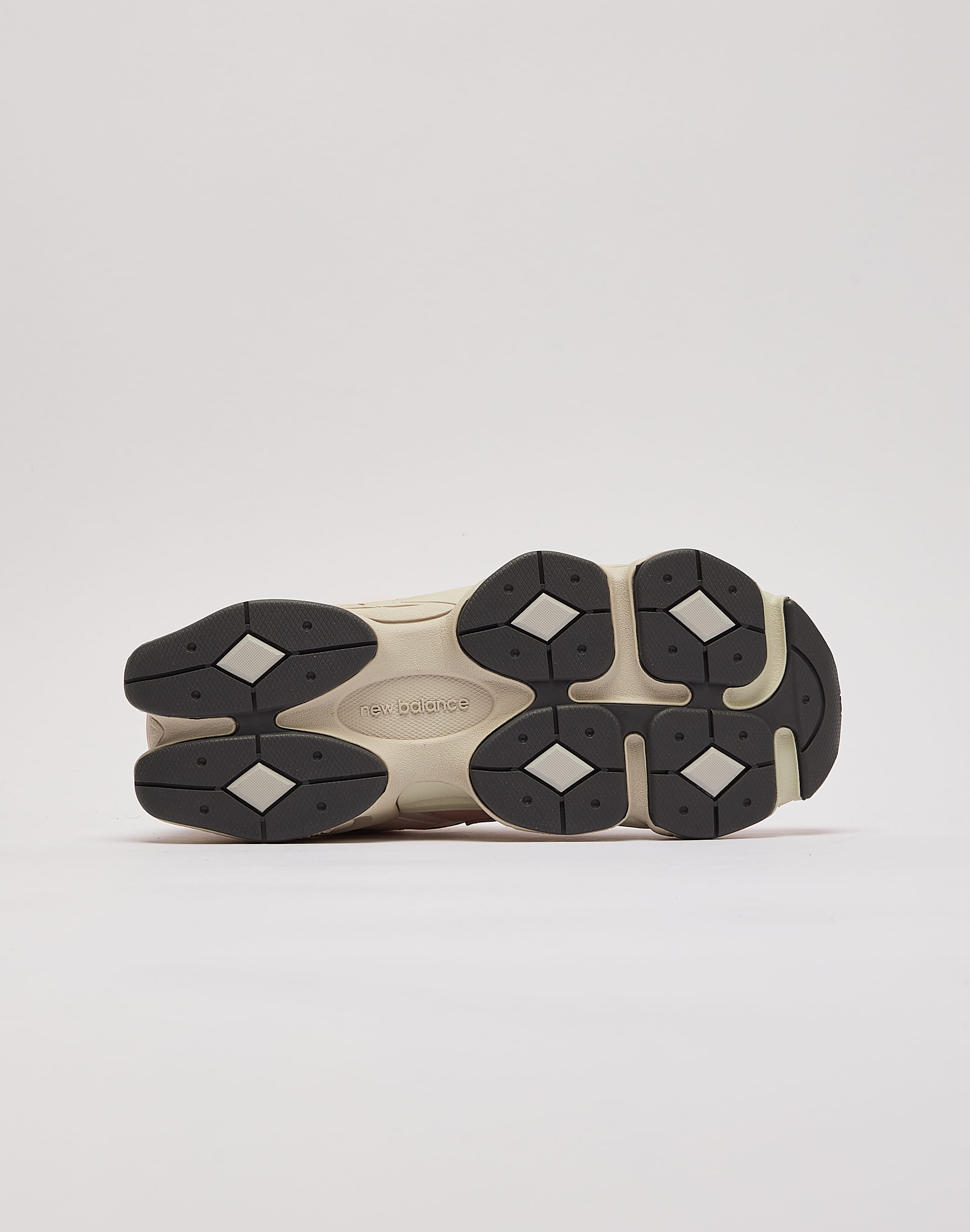The 9060 is a new expression of the refined style and innovation-led design that have made the 99X series home to some of the most iconic models in New Balance history. The 9060 reinterprets familiar elements sourced from classic 99X models with a warped sensibility inspired by the proudly futuristic, visible tech aesthetic of the Y2K era. Sway bars, taken from the 990, are expanded and utilized throughout the entire upper for a sense of visible motion, while wavy lines and scaled up proportions on a sculpted pod midsole place an exaggerated emphasis on the familiar cushioning platforms of ABZORB and SBS.