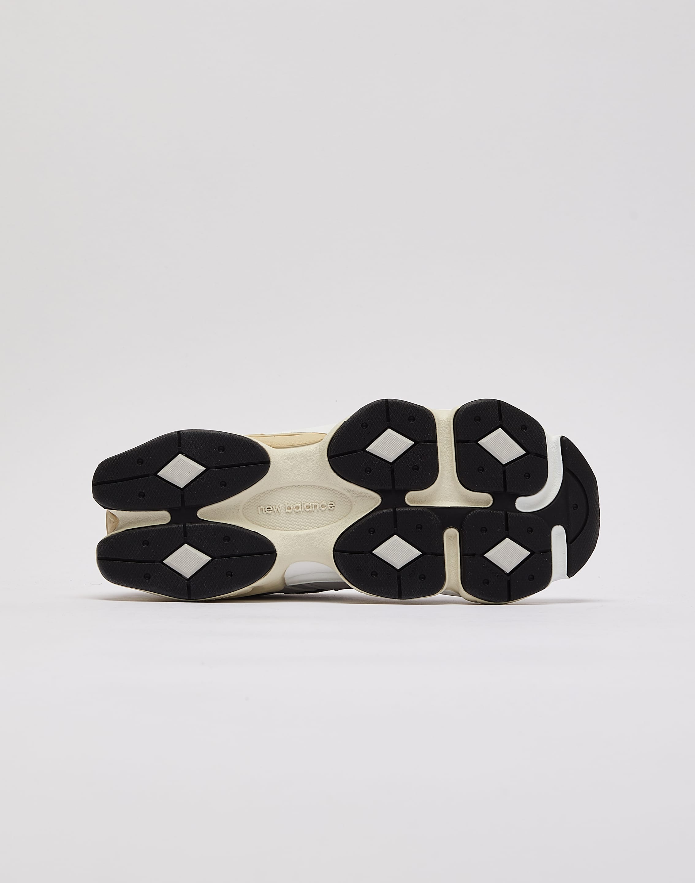 The 9060 is a new expression of the refined style and innovation-led design that have made the 99X series home to some of the most iconic models in New Balance history. The 9060 reinterprets familiar elements sourced from classic 99X models with a warped sensibility inspired by the proudly futuristic, visible tech aesthetic of the Y2K era. Sway bars, taken from the 990, are expanded and utilized throughout the entire upper for a sense of visible motion, while wavy lines and scaled up proportions on a sculpted pod midsole place an exaggerated emphasis on the familiar cushioning platforms of ABZORB and SBS.