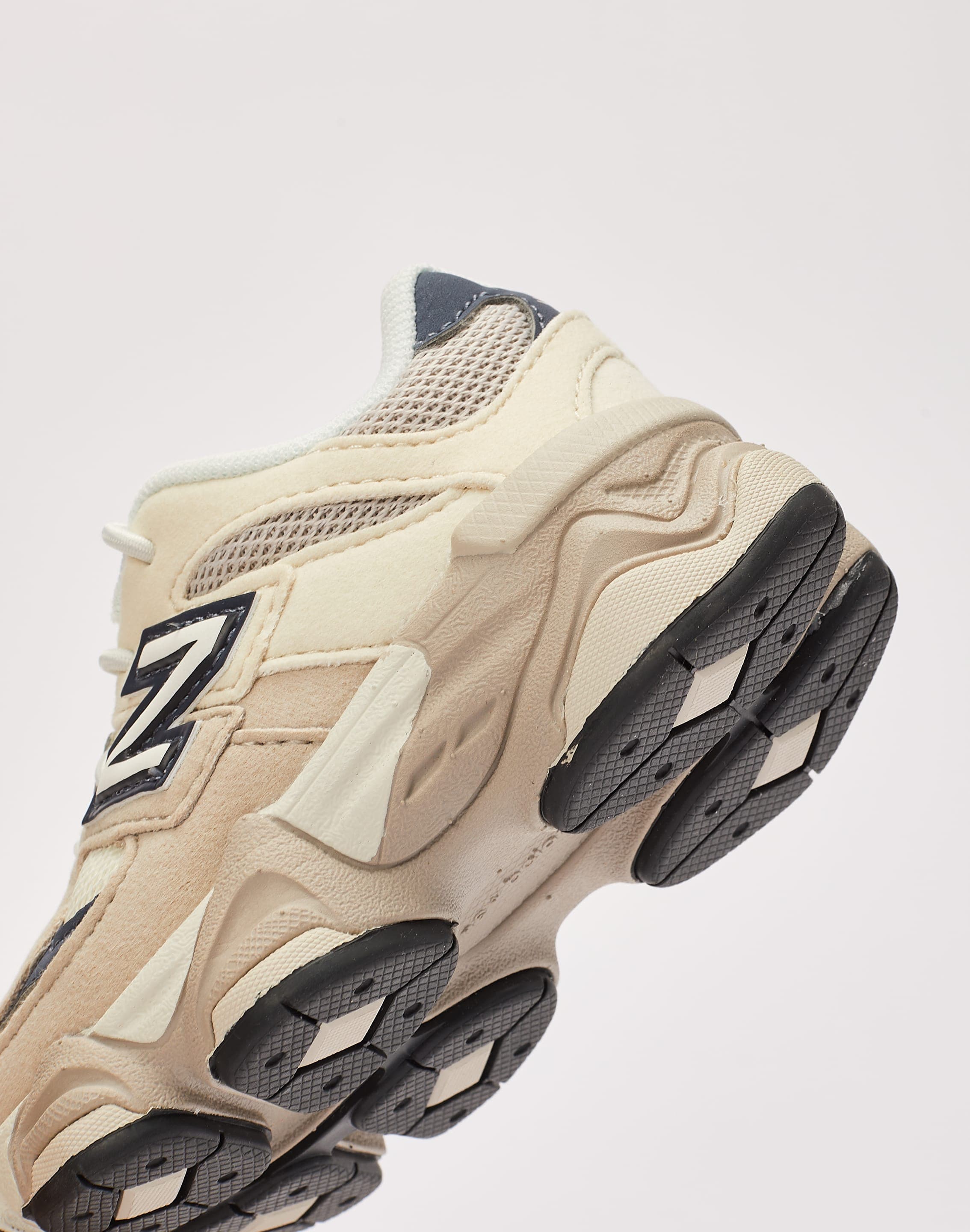 The 9060 is a new expression of the refined style and innovation-led design that have made the 99X series home to some of the most iconic models in New Balance history. The 9060 reinterprets familiar elements sourced from classic 99X models with a warped sensibility inspired by the proudly futuristic, visible tech aesthetic of the Y2K era. Sway bars, taken from the 990, are expanded and utilized throughout the entire upper for a sense of visible motion, while wavy lines and scaled up proportions on a sculpted pod midsole place an exaggerated emphasis on the familiar cushioning platforms of ABZORB and SBS.