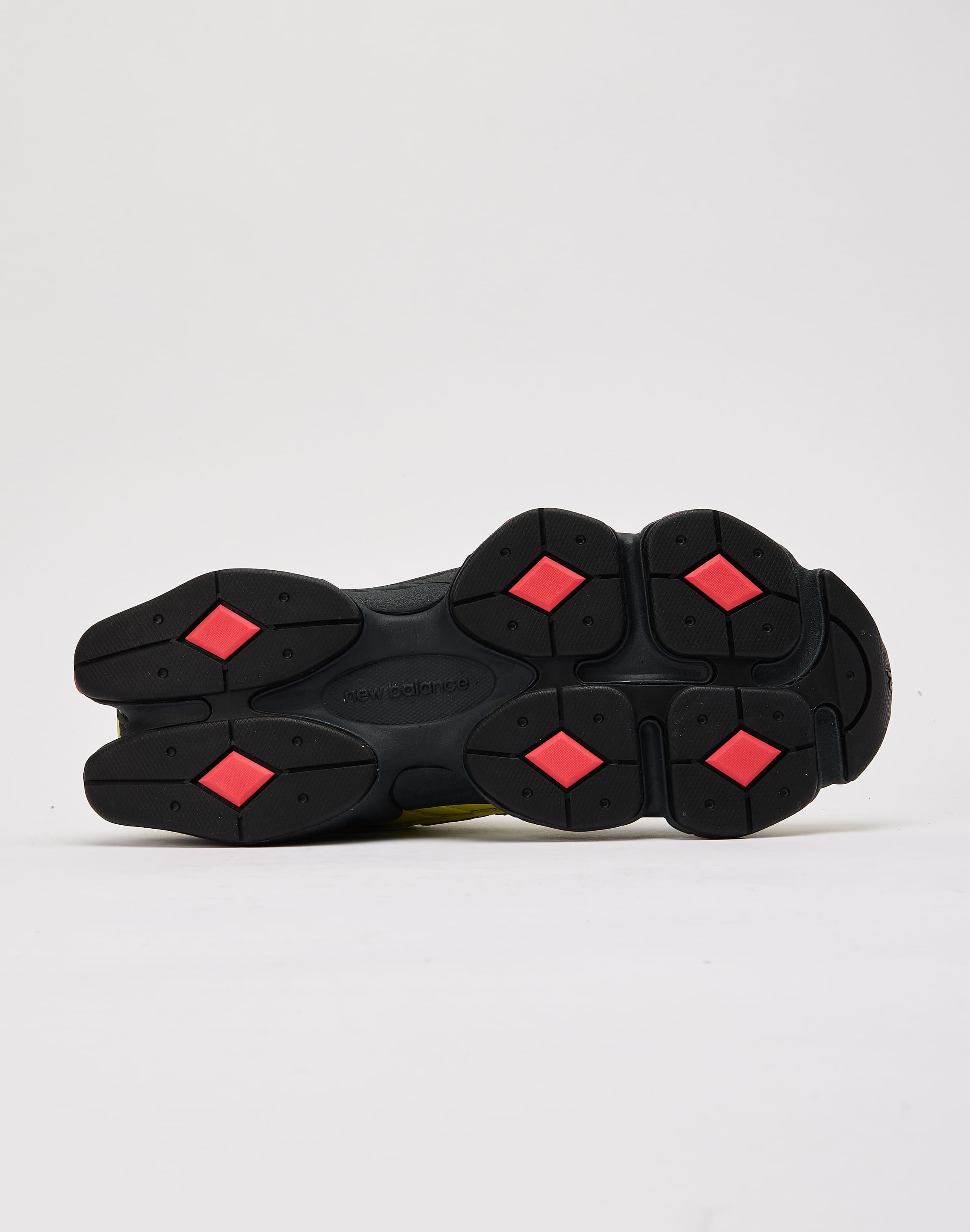 The 9060 is a new expression of the refined style and innovation-led design that have made the 99X series home to some of the most iconic models in New Balance history. The 9060 reinterprets familiar elements sourced from classic 99X models with a warped sensibility inspired by the proudly futuristic, visible tech aesthetic of the Y2K era. Sway bars, taken from the 990, are expanded and utilized throughout the entire upper for a sense of visible motion, while wavy lines and scaled up proportions on a sculpted pod midsole place an exaggerated emphasis on the familiar cushioning platforms of ABZORB and SBS.