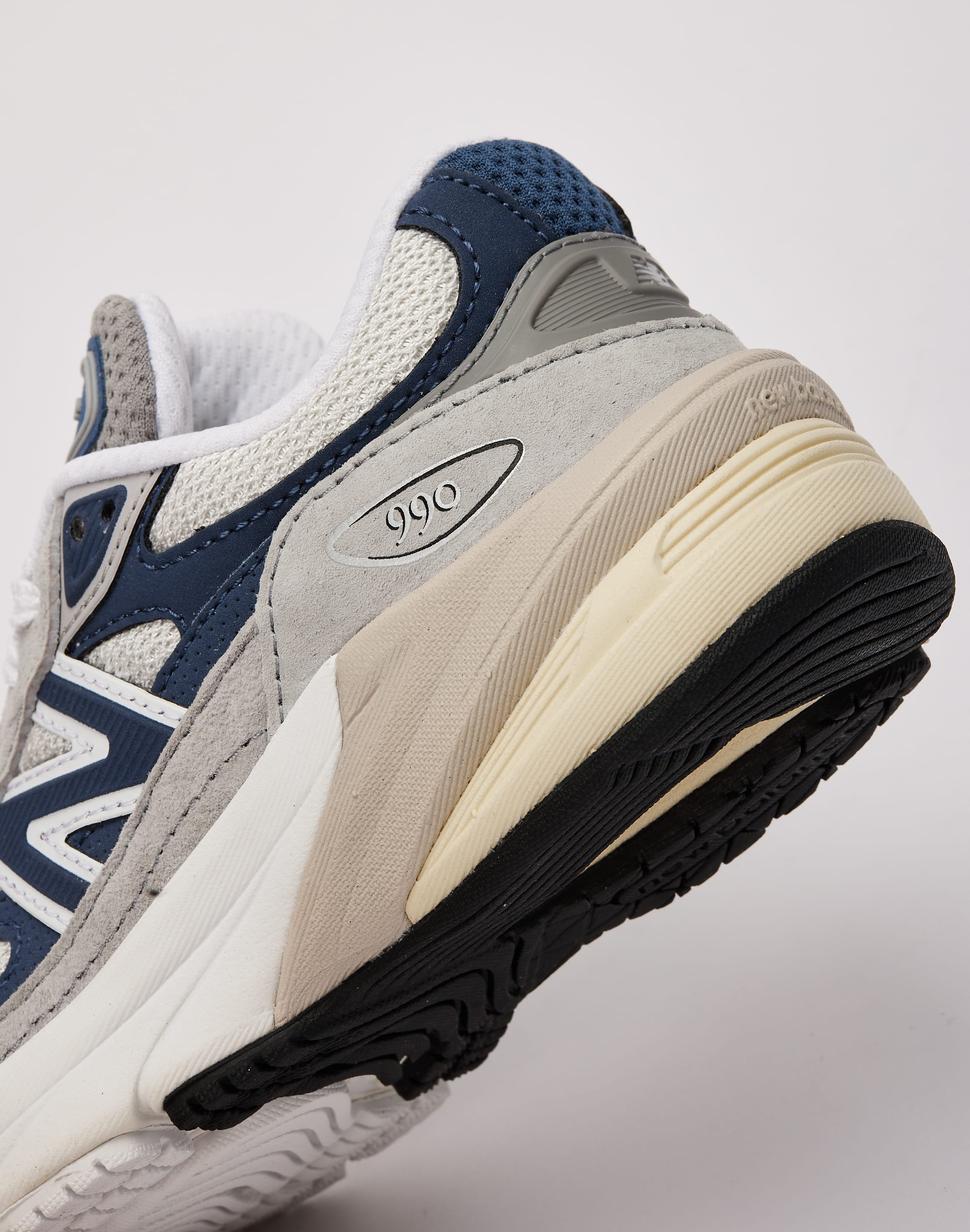 The designers of the first 990 were tasked with creating the single best running shoe on the market. The 990v6 embraces this original mandate, with a series of performance-inspired updates. The upper dispenses with the standard midfoot saddle, allowing the pigskin and synthetic overlays to flow from heel to toe across the mesh underlay, for a speedy, streamlined look. While the evolved design marks one of the most dramatic changes from one generation model to the next that the 990 has ever seen, the greatest leap forward occurs on the inside. The addition of FuelCell midsole cushioning means that the evolution of the 990 can be felt as much as it can be seen.