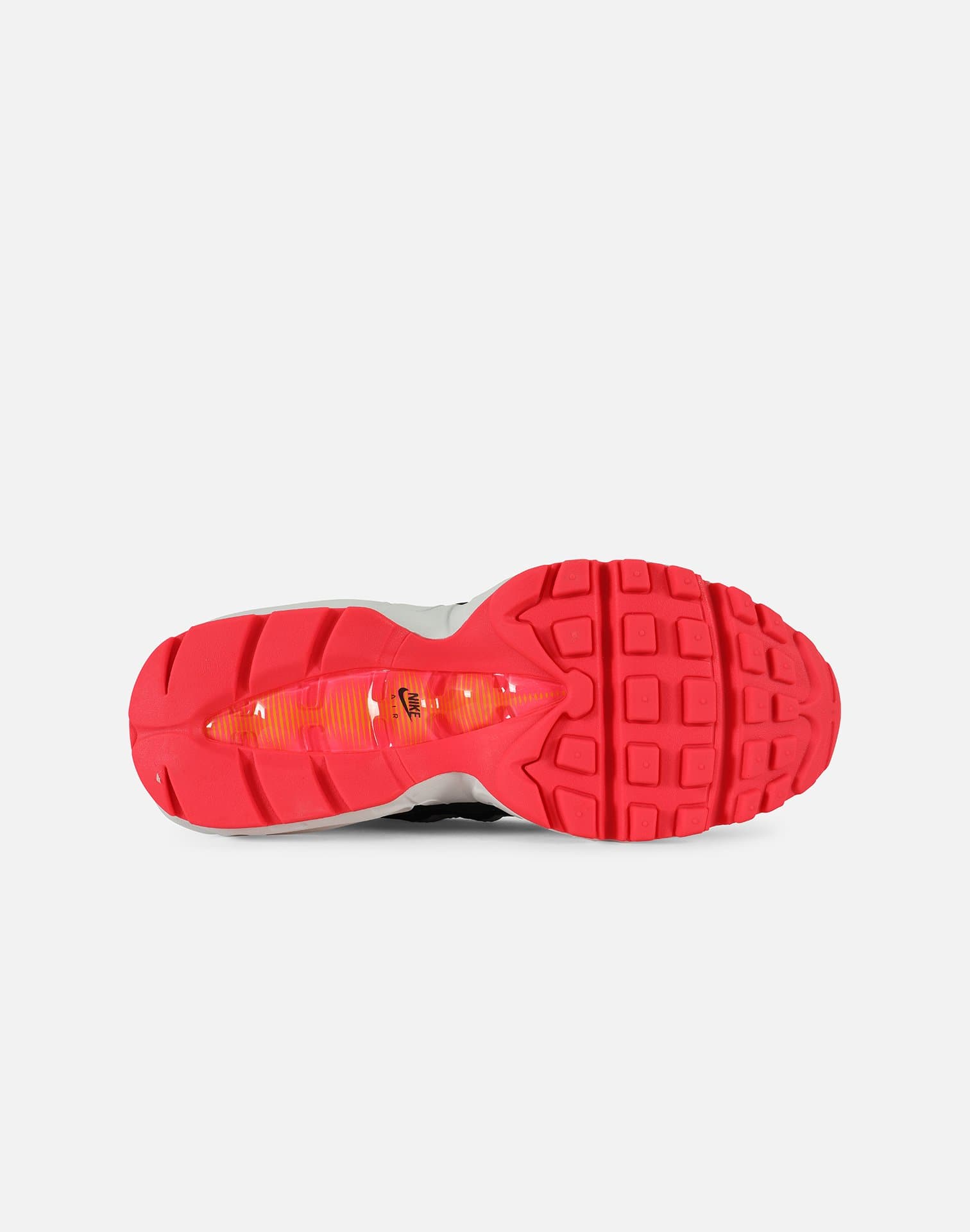The Nike Air Max 95 Women's Shoe celebrates the '90s icon with the plush cushioning that made the original famous and a breathable upper with leather and synthetic leather overlays. This Air Max comes in a clean white and navy colorway with an orange swoosh and air bubble. A vibrant fluorescent pink dresses the sole making this Air Max one that will stand out in a crowd.