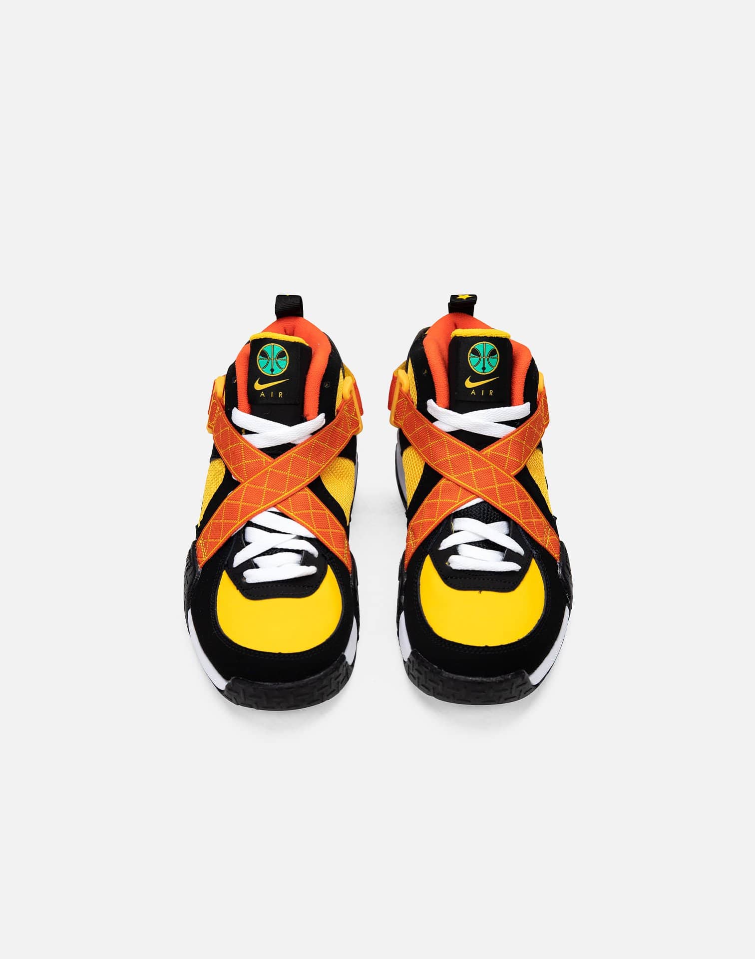 It's back and way funked up. Paying tribute to the Roswell Rayguns, Nike's time-traveling all-star hoops team, the Nike Air Raid returns. Retro Raygun colors, embroidered accents and other hip details bring you back to 1975. Its famous criss-crossing strap combines with velvety nubucks and air mesh for the perfect off-court rendition of the clandestine hoops silhouette. Can you dig it?