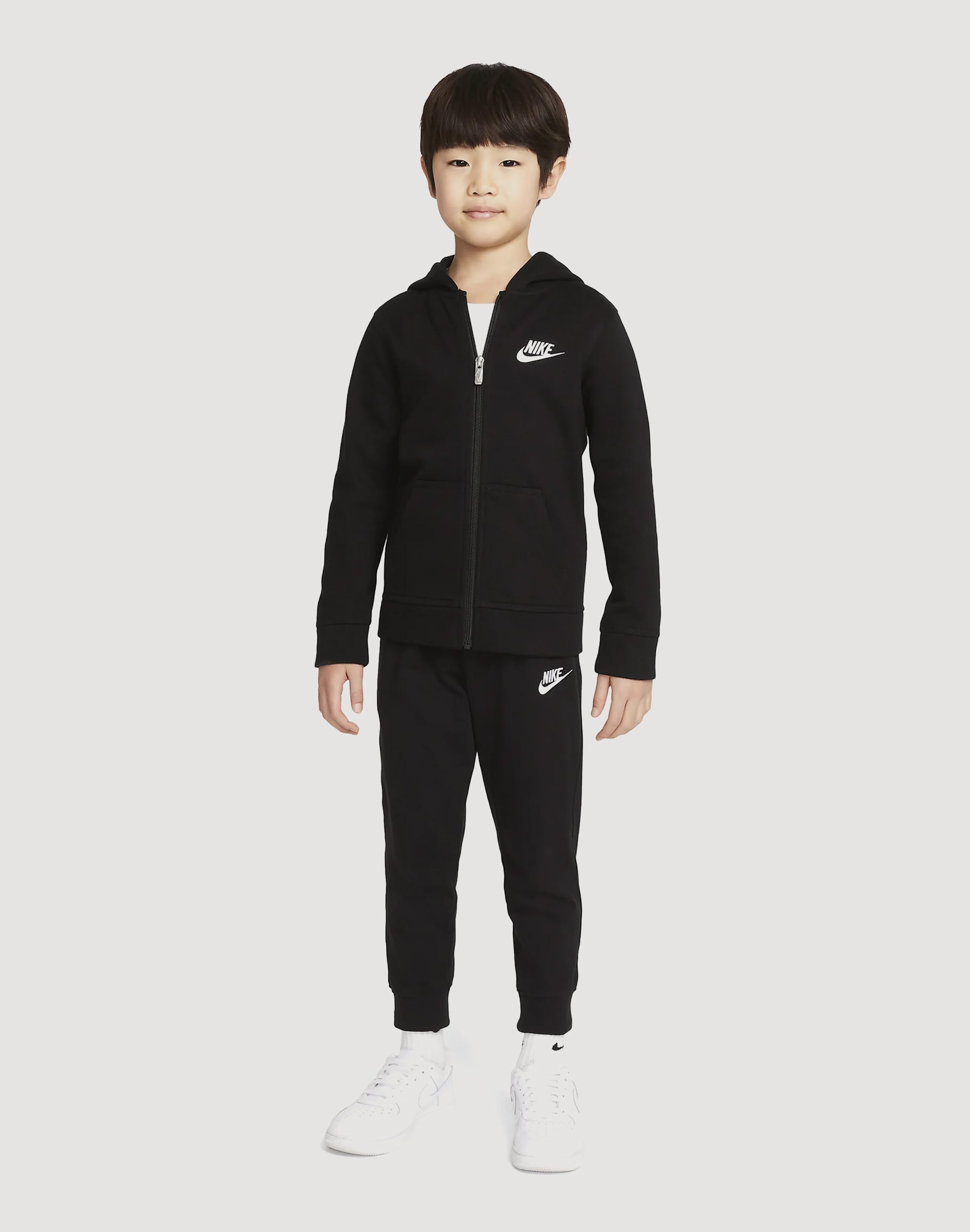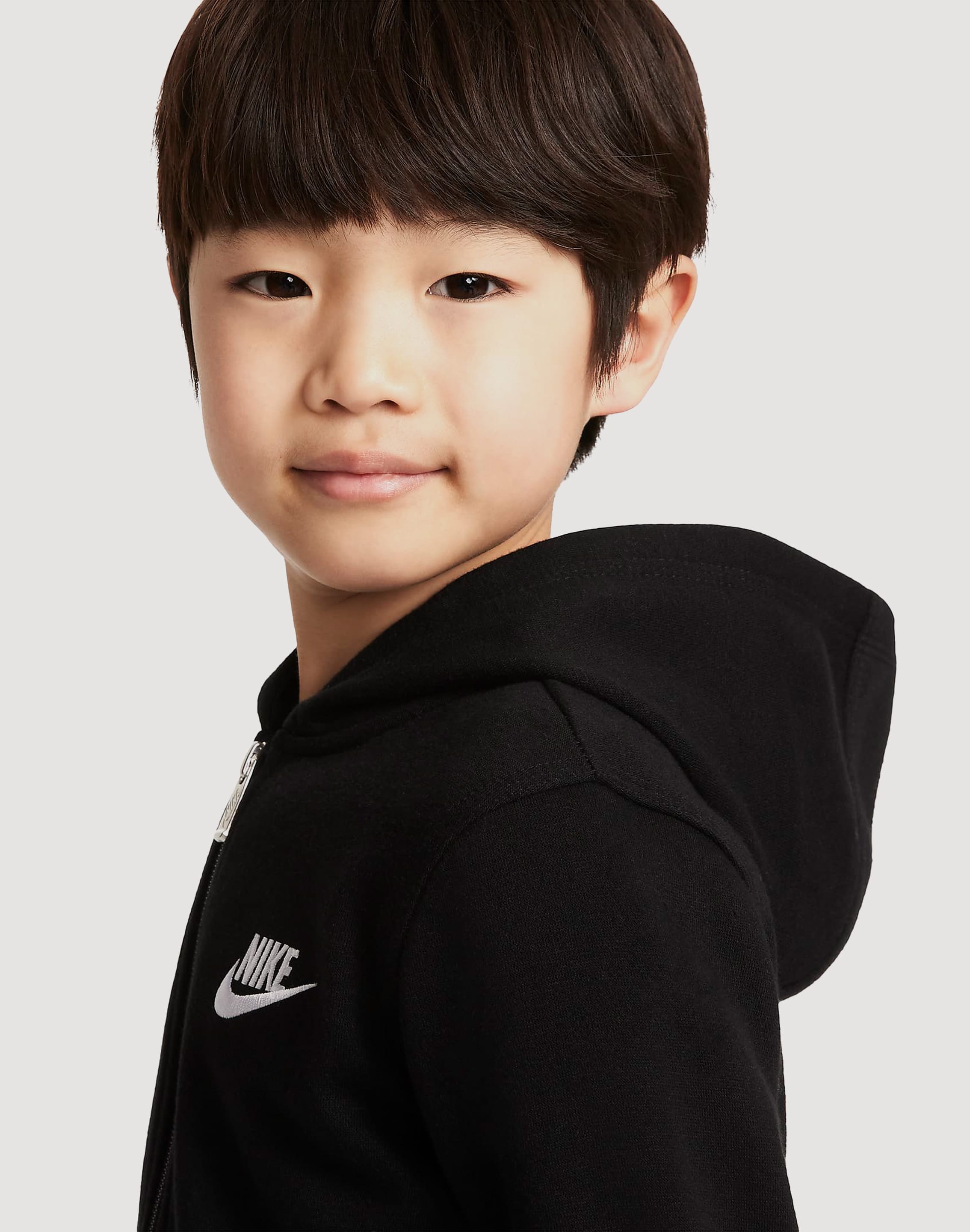 The Nike Sportswear Club Fleece Full-Zip Hoodie features soft, lightweight fleece fabric to help keep little ones warm when temperatures drop.