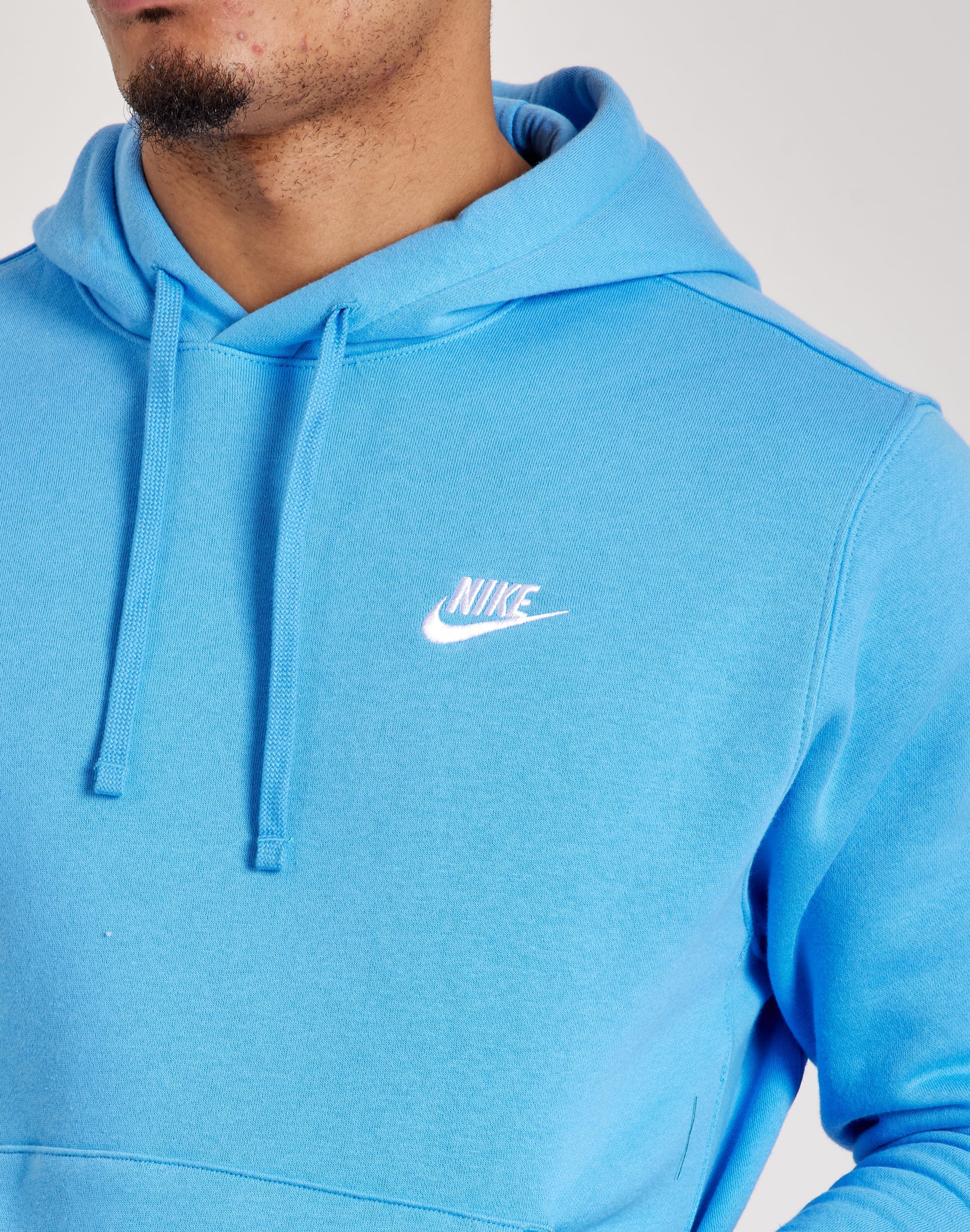 The Nike Club Fleece Pullover Hoodie is the perfect blend of comfort and style. Made from soft, brushed fleece fabric, this hoodie is both cozy and warm, making it the perfect choice for cooler weather. The pullover design features a spacious kangaroo pocket, perfect for storing your phone, keys, or other small items. The adjustable hood and ribbed cuffs and hem help to keep the cold out, while the embroidered Nike logo on the chest adds a touch of athletic flair. Whether you're running errands or running laps, the Nike Club Fleece Pullover Hoodie has got you covered.