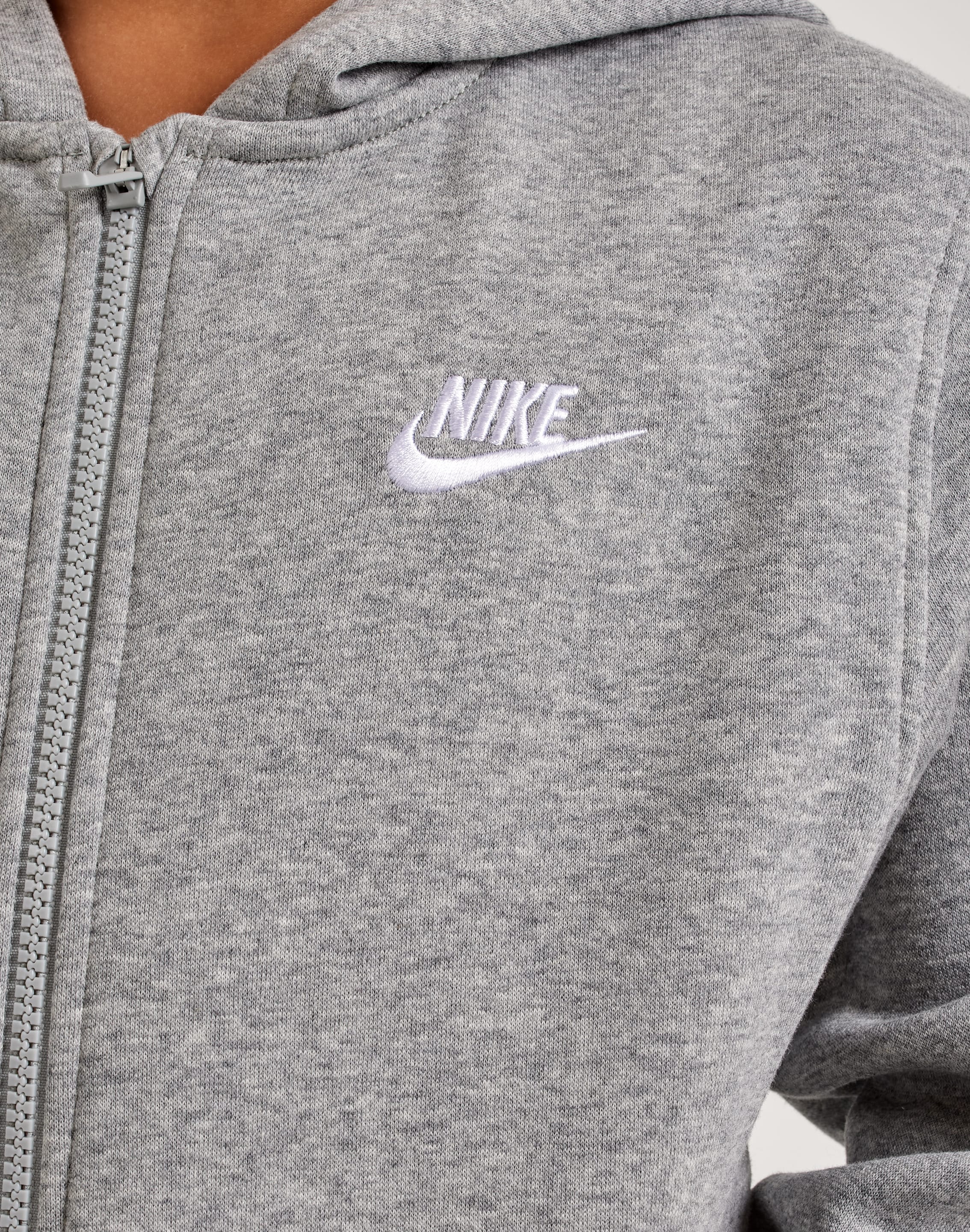 Comfort is key. Your little one will love this Nike Club Fleece Full-Zip Hoodie – it's lined with soft, brushed fleece and comes in a matchable grey color.