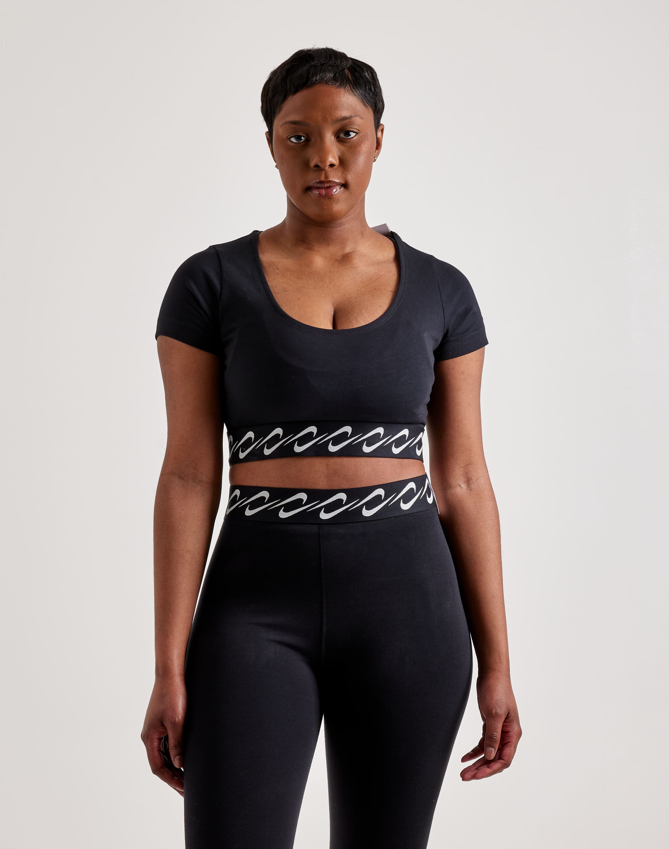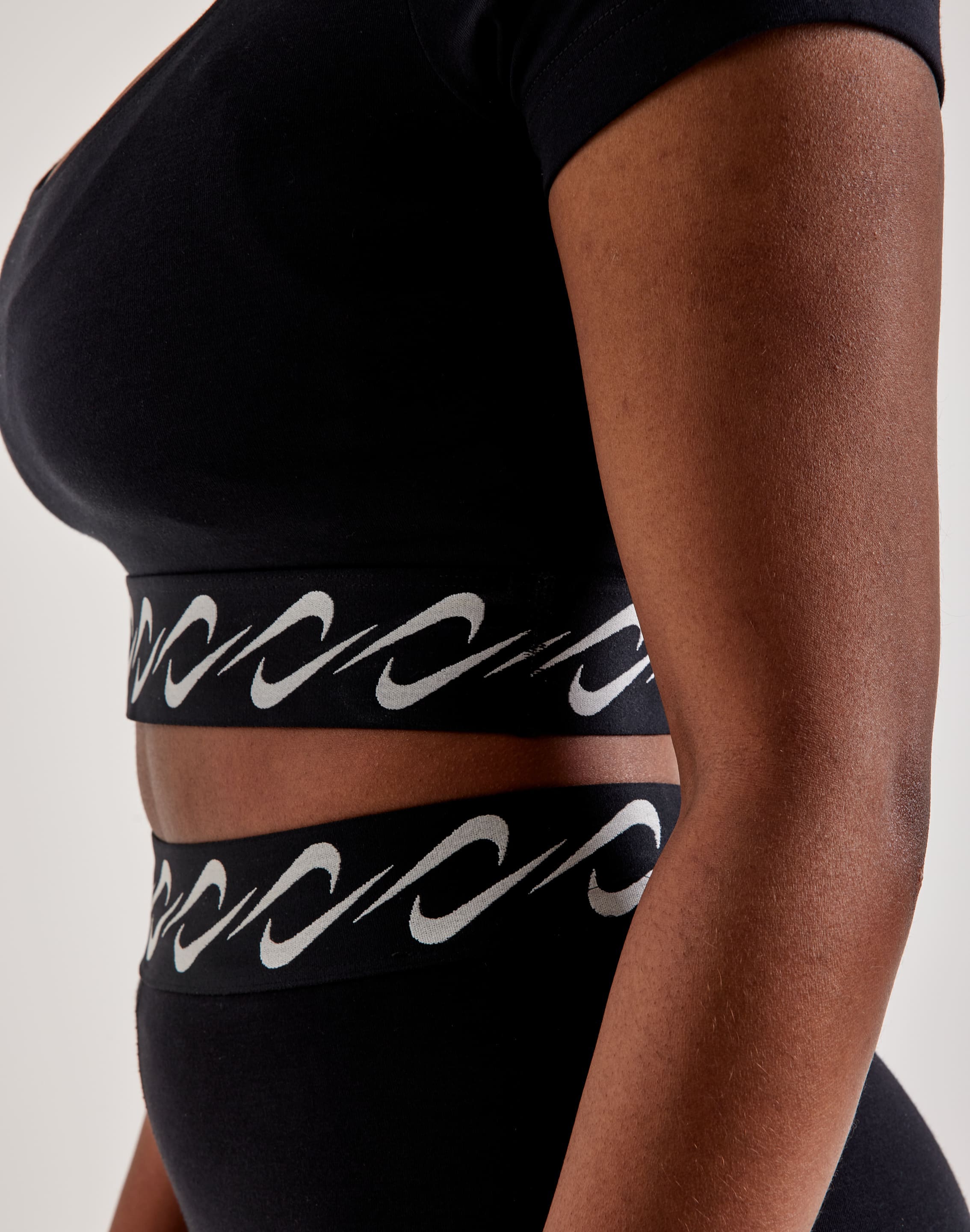 With the Nike Essential Swoosh Top, indulge in luxurious comfort with a velvety-smooth fabric that's a dream to wear from dawn till dusk. Elevate your look with the cropped silhouette and the playful repetition of the iconic Swoosh logos along the waistband.