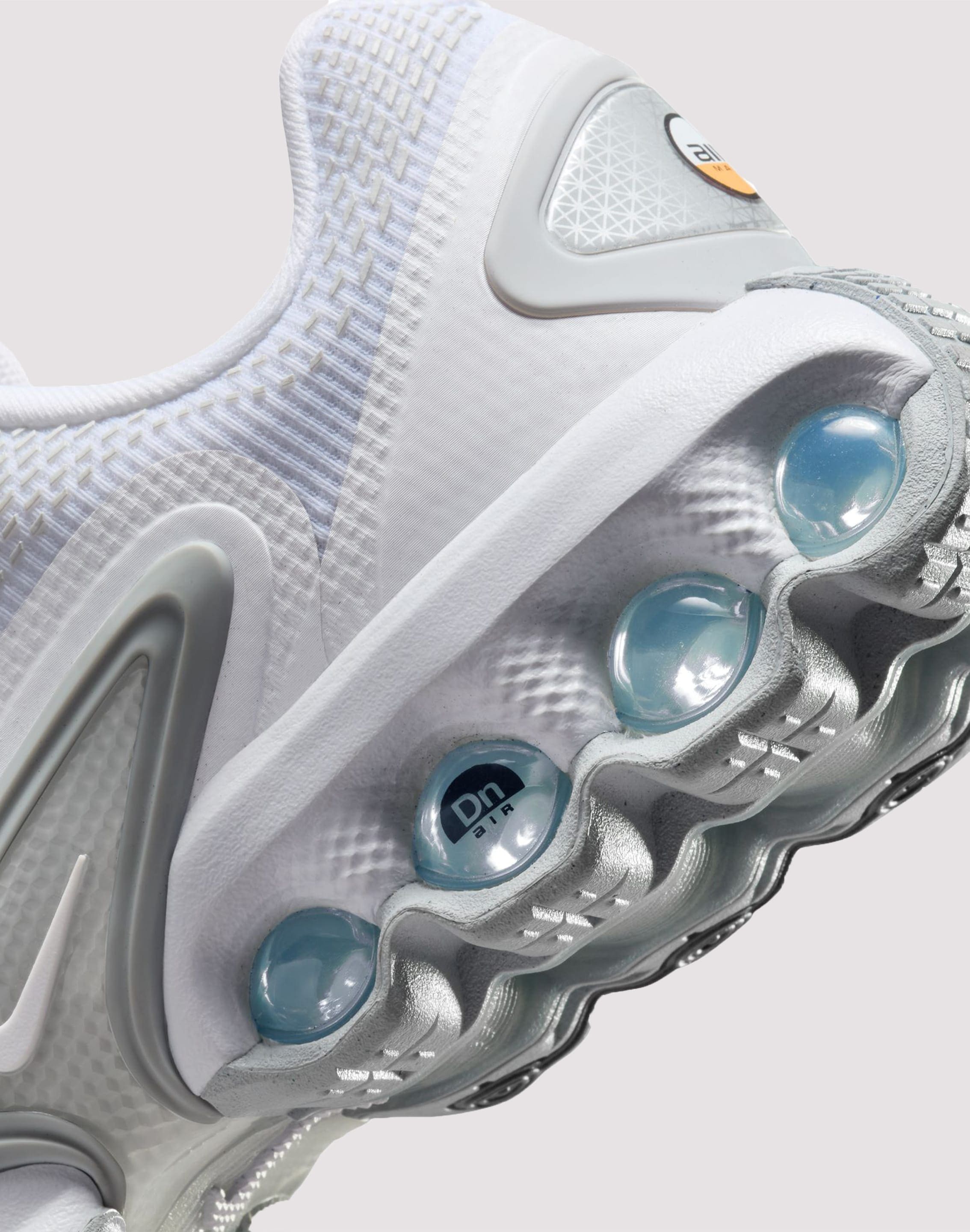 Say hello to the next generation of Air technology. The Nike Air Max Dn "White/Metallic Silver' Grade School Boys' Shoe? features our Dynamic Air unit system of dual-pressure tubes, creating a bouncy sensation with every step. This results in a futuristic design that's comfortable enough to wear all day. Go ahead—Feel the Unreal.