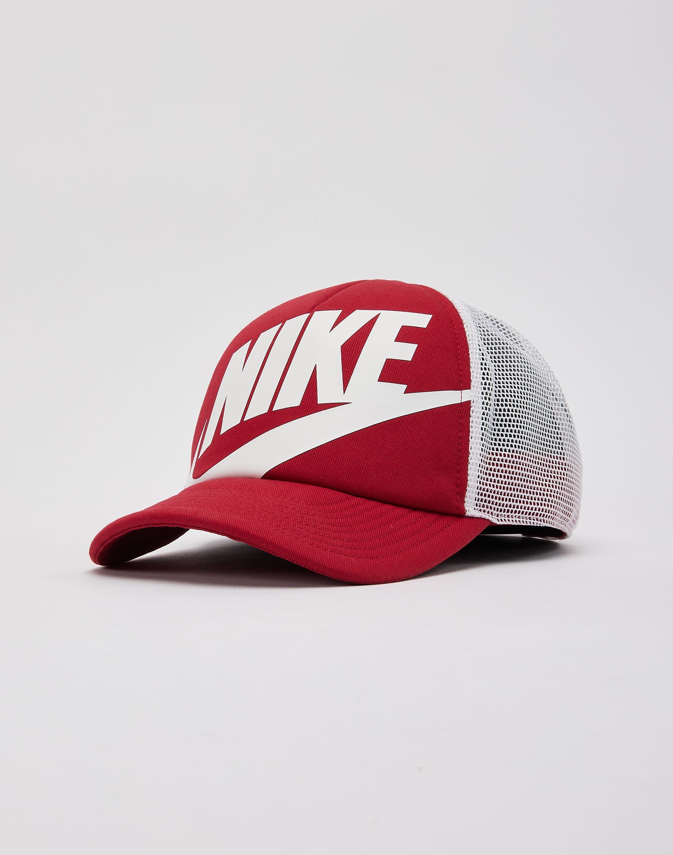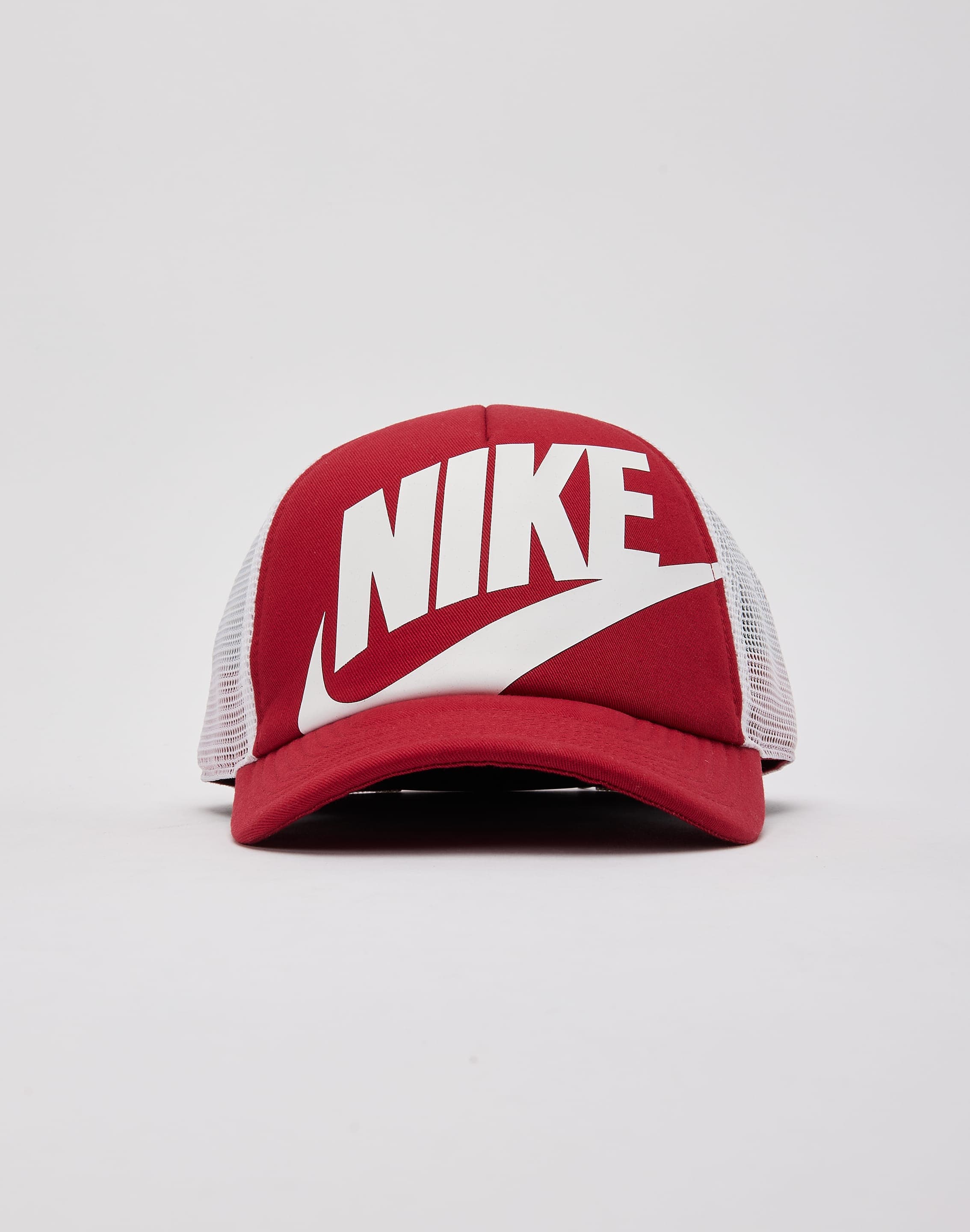 Accessorize your outfit with the Nike Rise Trucker Hat. This hat features a large Nike graphic printed on the front panel and an adjustable snapback closure.