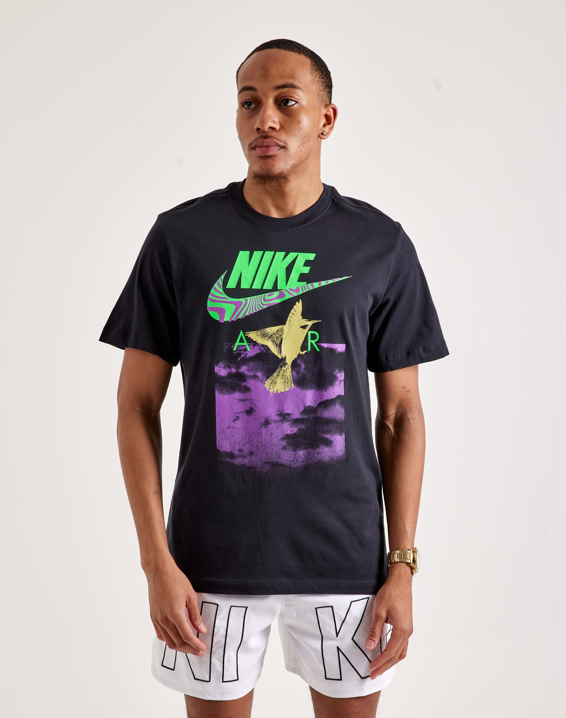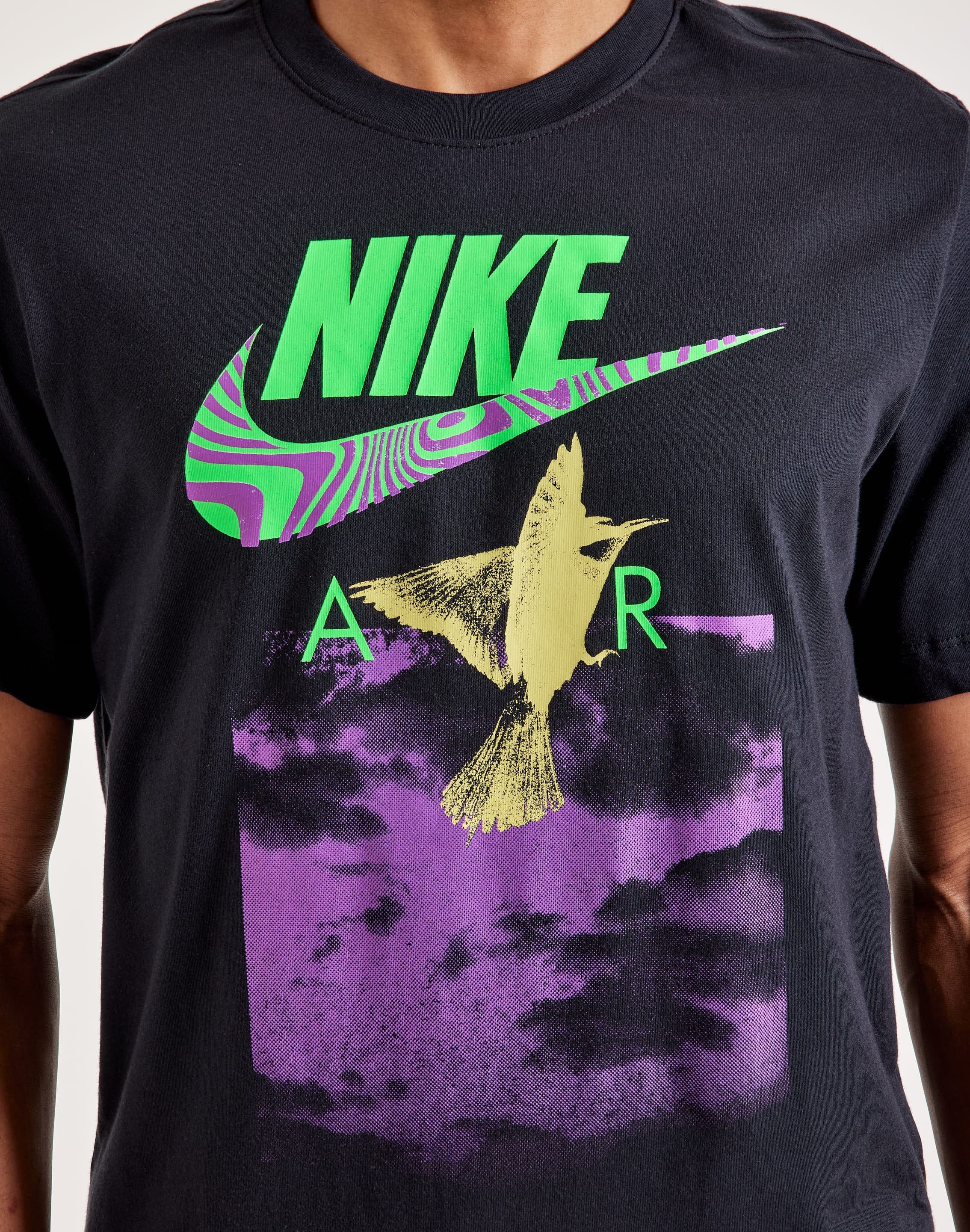 Soar to new heights in Nike Air graphics. Crafted from lightweight cotton for plush, day-to-day comfort, this T-shirt ensures a cozy feel throughout the chest and body, offering an athletic fit perfect for layering.