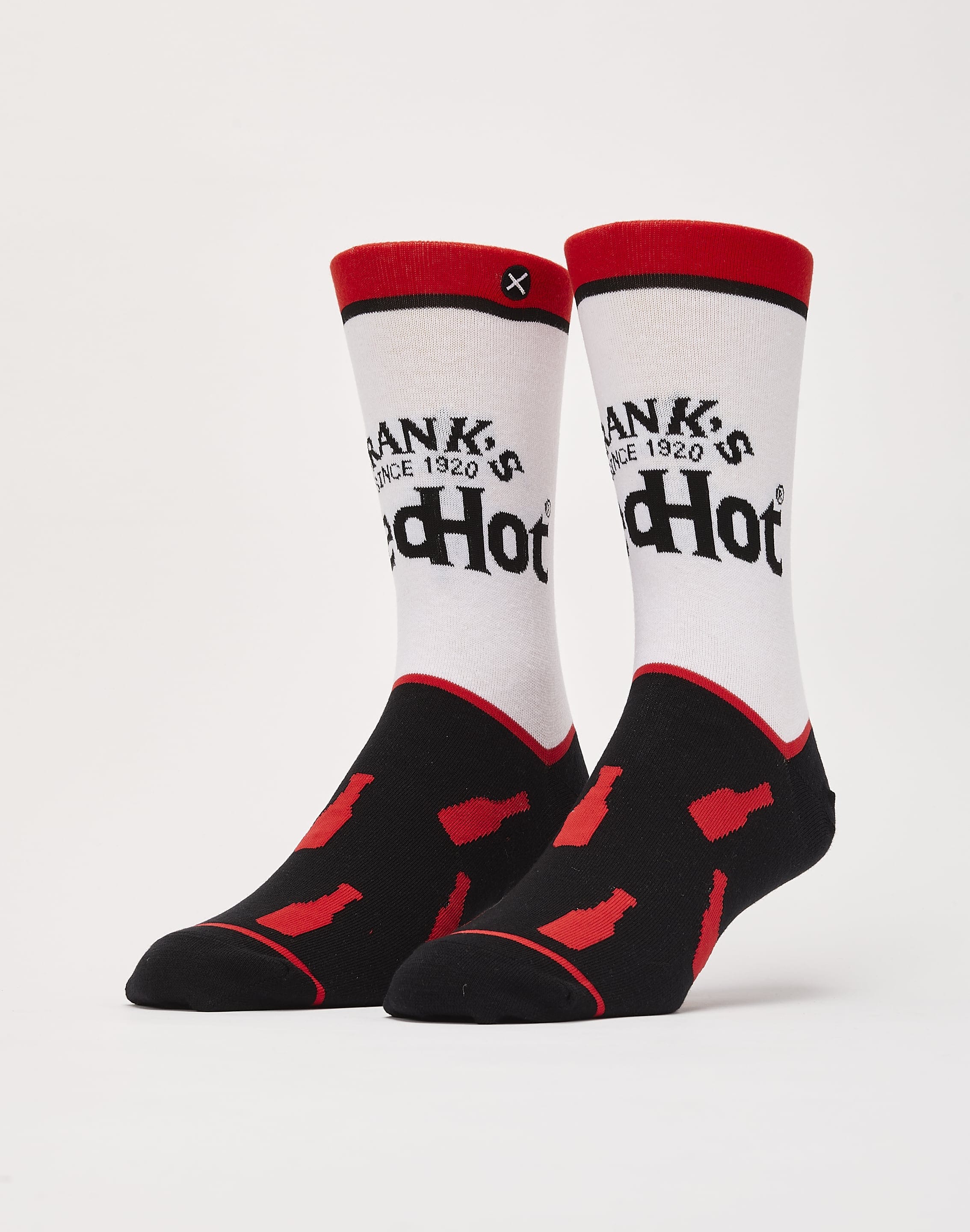These Frank's Red Hot Crew Socks for men have everything you need to stay comfortable. A premium poly-blended construction helps your feet stay dry, while a cushioned heel and elastic arch support hug your feet in all the right places.