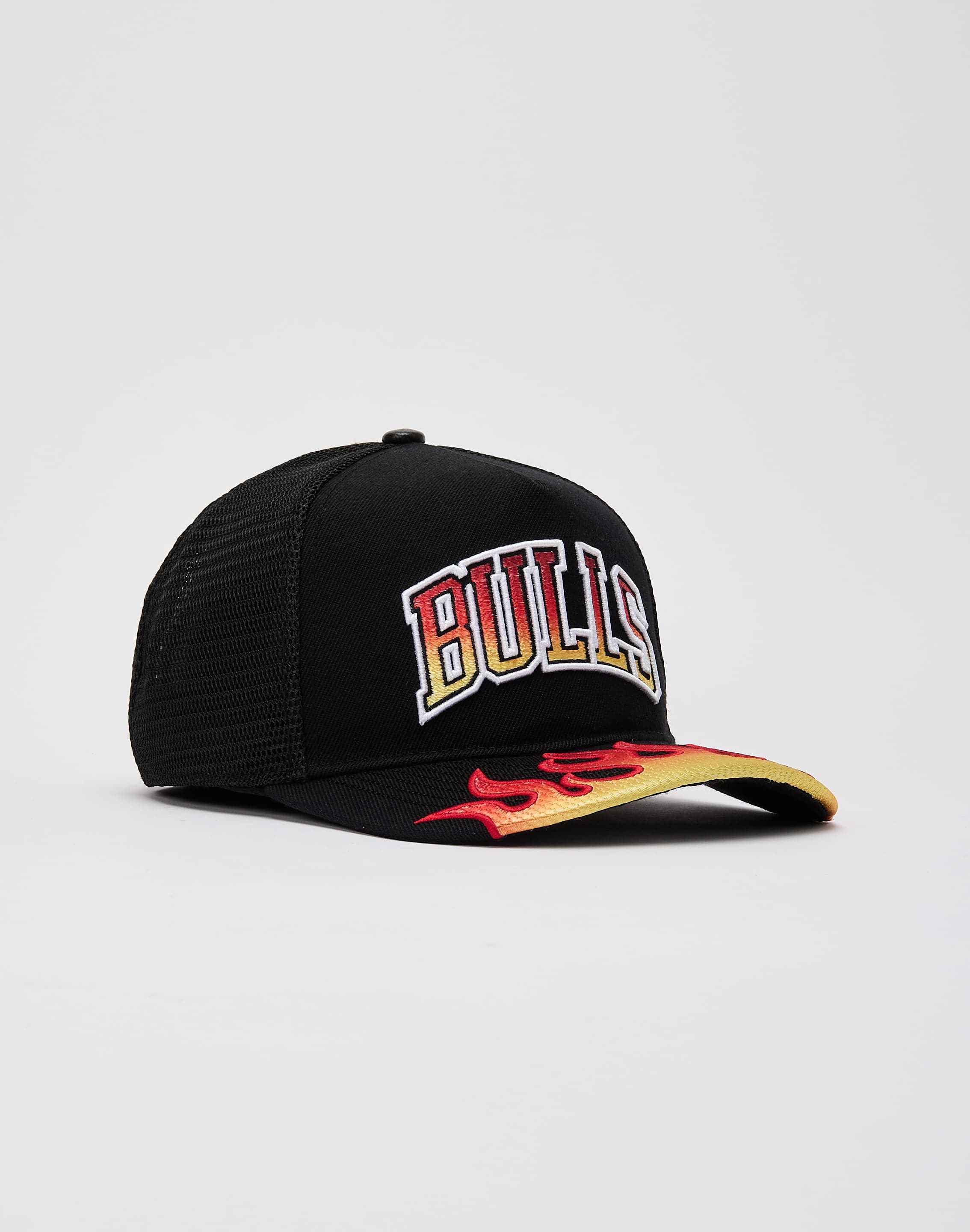 Rep your favorite squad with this DTLR-exclusive Chicago Bulls Trucker Hat from Pro Standard. This throwback cap has a breathable mesh back and features embroidered flame details.