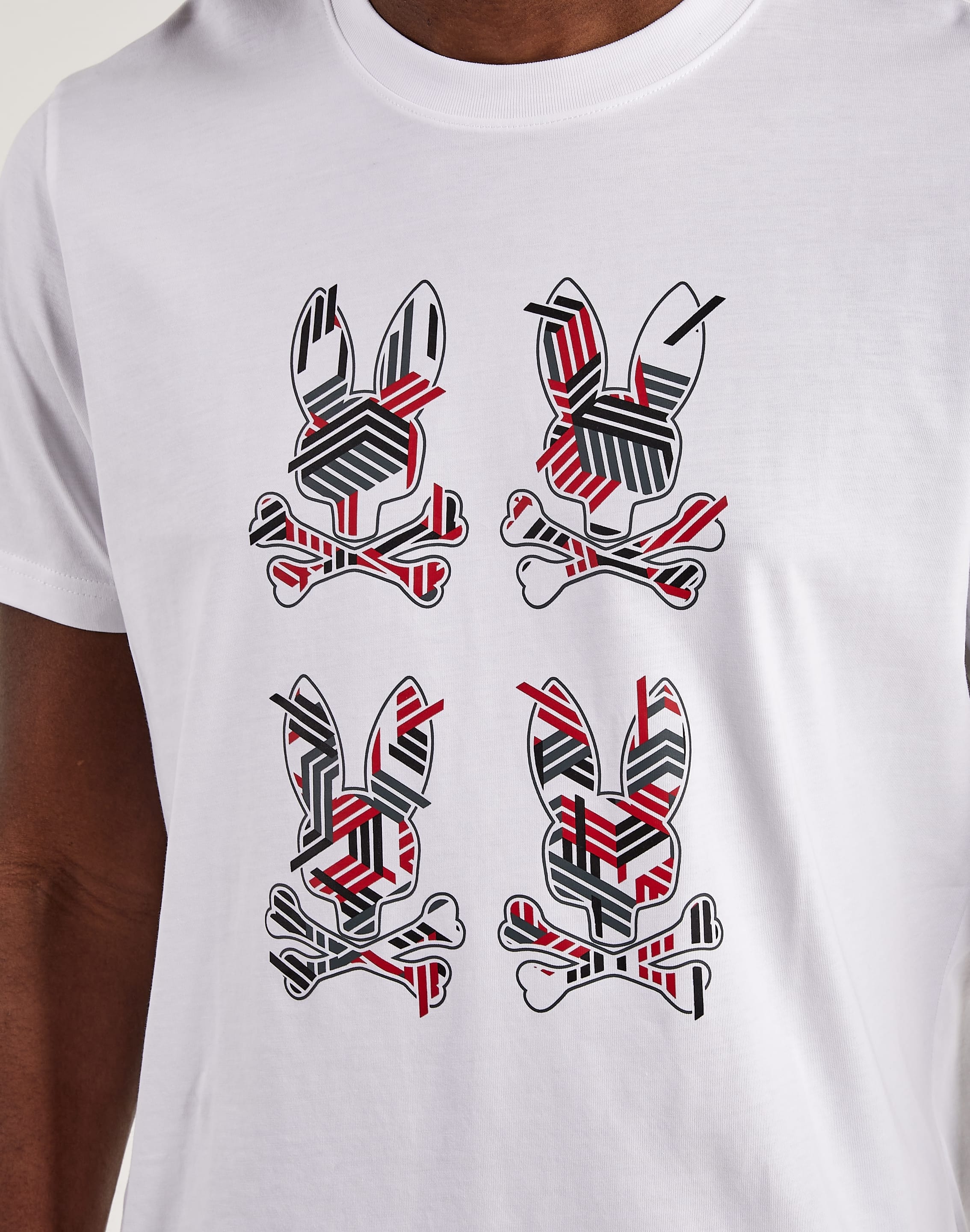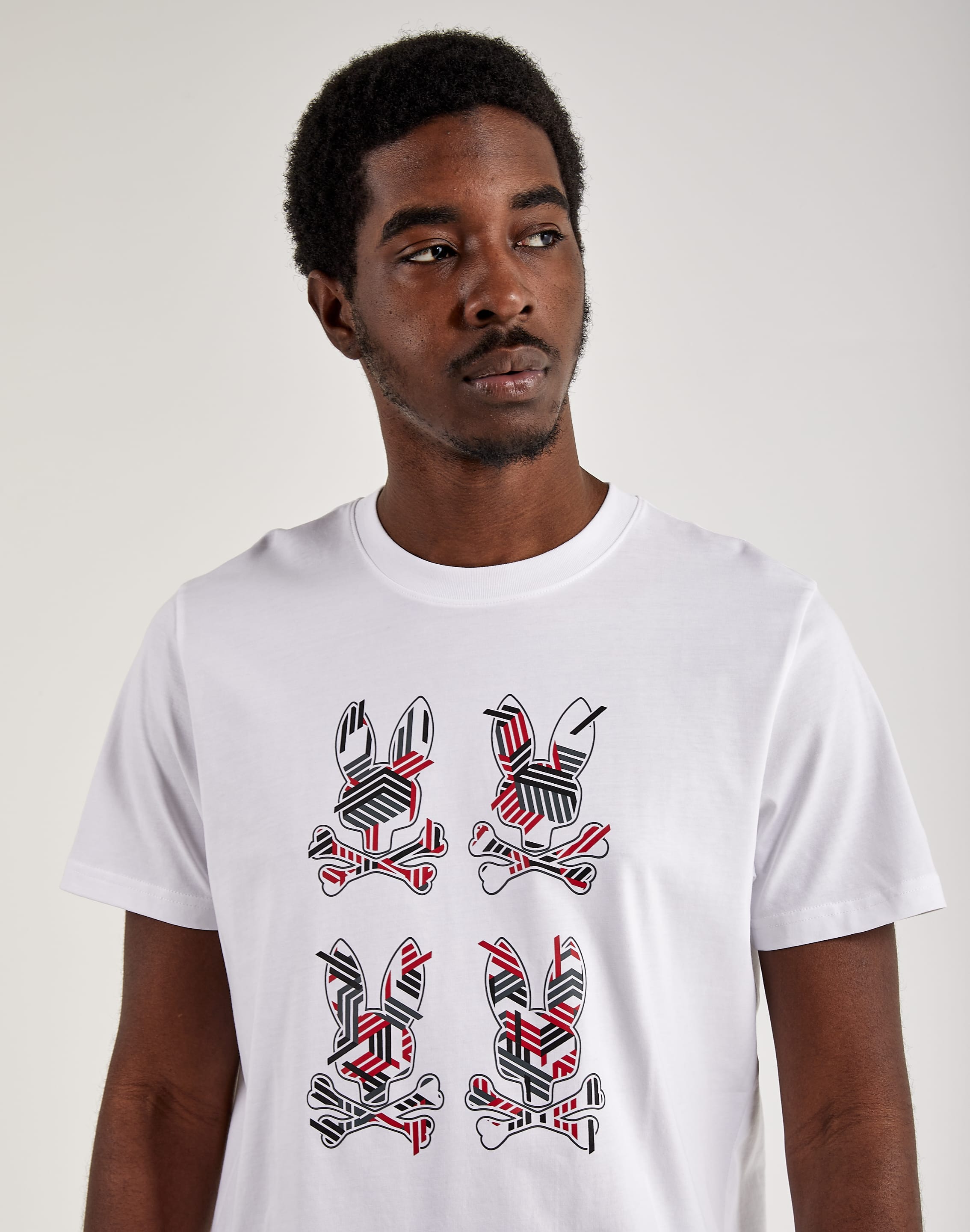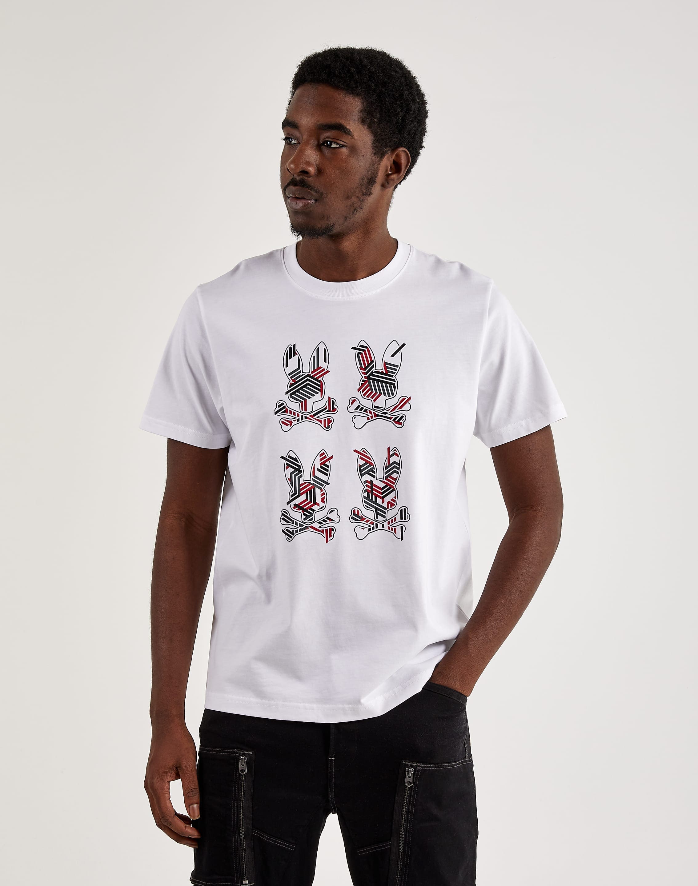 Gear up for the warm weather with Psycho Bunny's Plaza Graphic Tee. This comfortable cotton T-shirt features contrast-colored Psycho Bunny graphics that pop. Its ribbed crewneck collar and short sleeves will ensure you're comfortable all day.