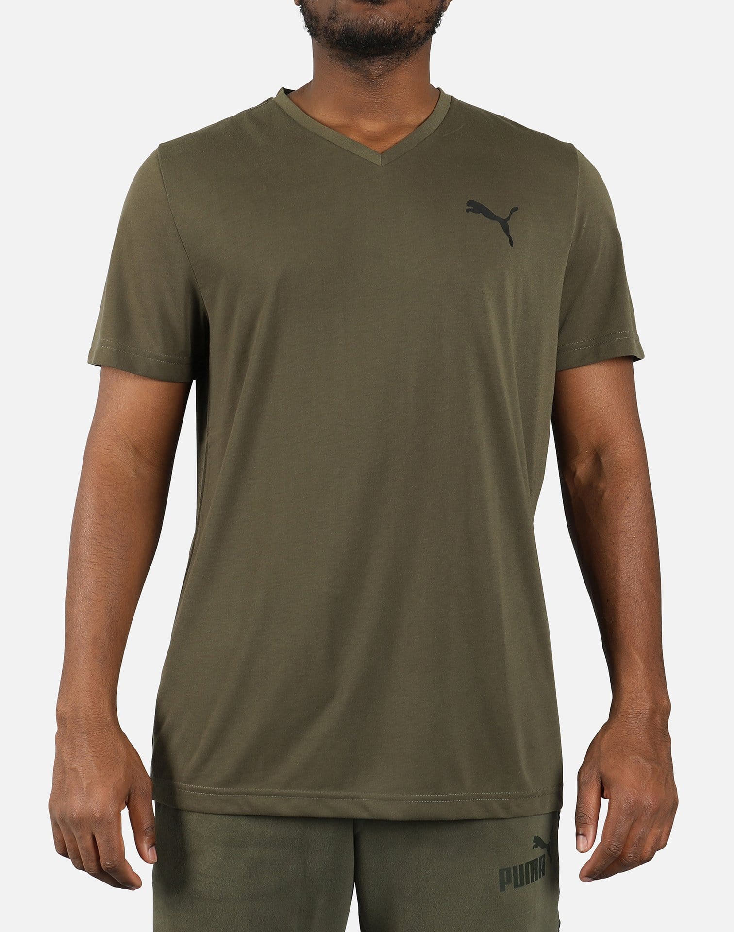 No basics collection is complete without this Puma Active V-Neck Tee. Done in a trendy olive, this tee features Puma's Big Cat logo on the left chest, adding even more style.