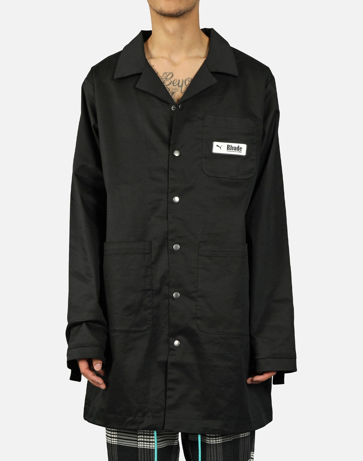 For their first collaboration with PUMA, RHUDE takes a new look at rebellion, focusing not on its cause but on its cure. The collection blends modern streetwear with vintage suiting, accented by details that allude to medical elements like tiled flooring, lab coats and bright, menthol green accents. This RHUDE elongated jacket is a great blend of sleek style, combines with modern and vintage style with street-ready sophistication.