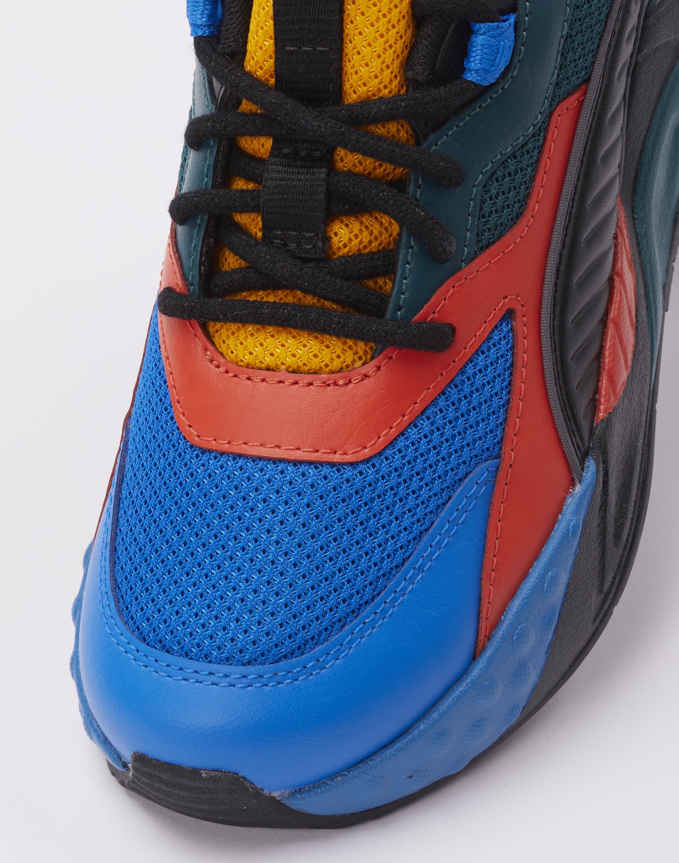 The latest entry in PUMA's RS line, the RS-TRCK, is part running sneaker, part hiking boot, and wholly comfortable. This colorful kids' shoe boasts a mixture of materials, like mesh and leather. It features a soft foam midsole for supreme comfort and a rugged rubber outsole for traction on the trails or in the streets.