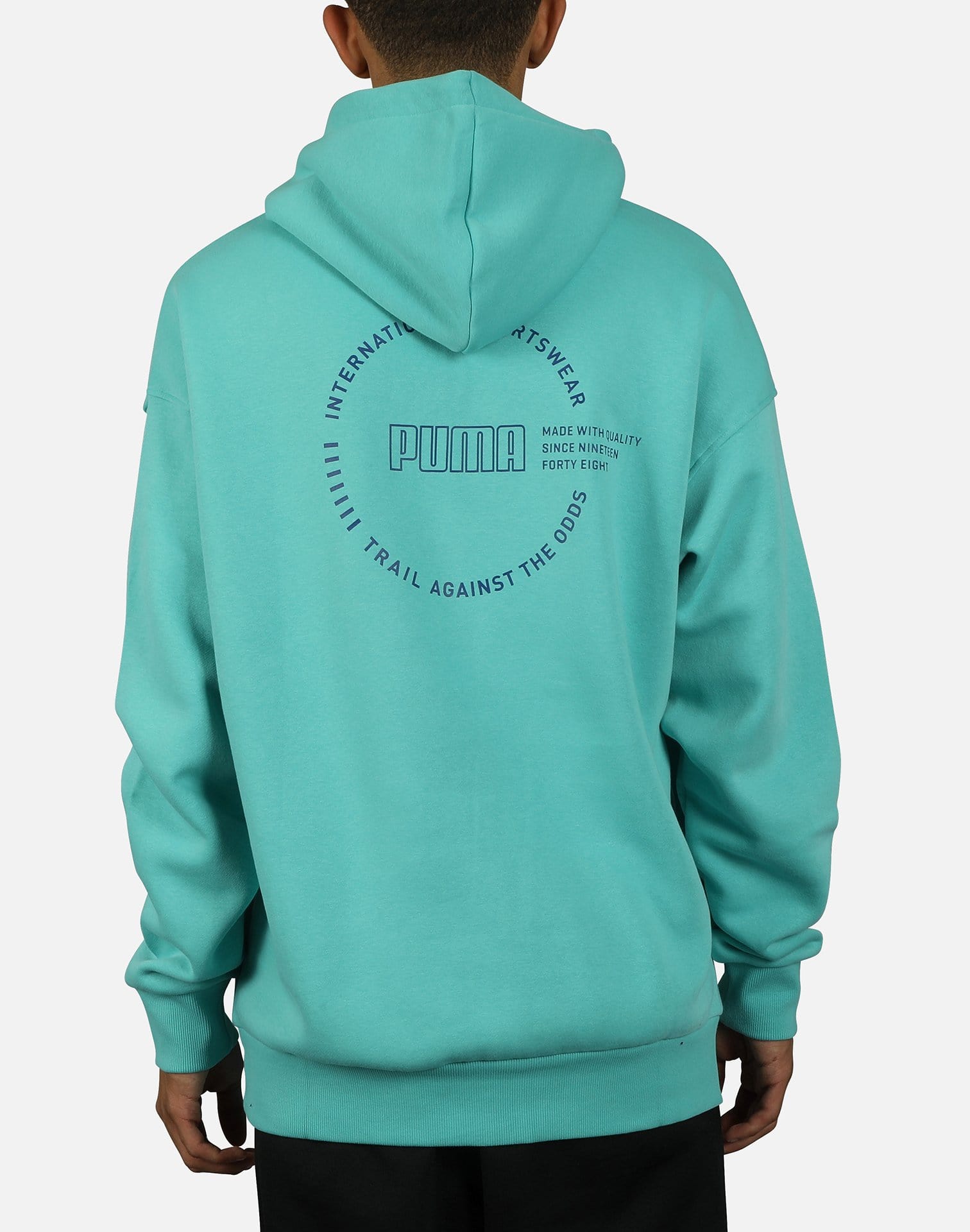 The International Sportswear collection offers eclectic variations on PUMA's tried and true look. The adjustable hoodie on this piece comes with a pair of drawcord stoppers.