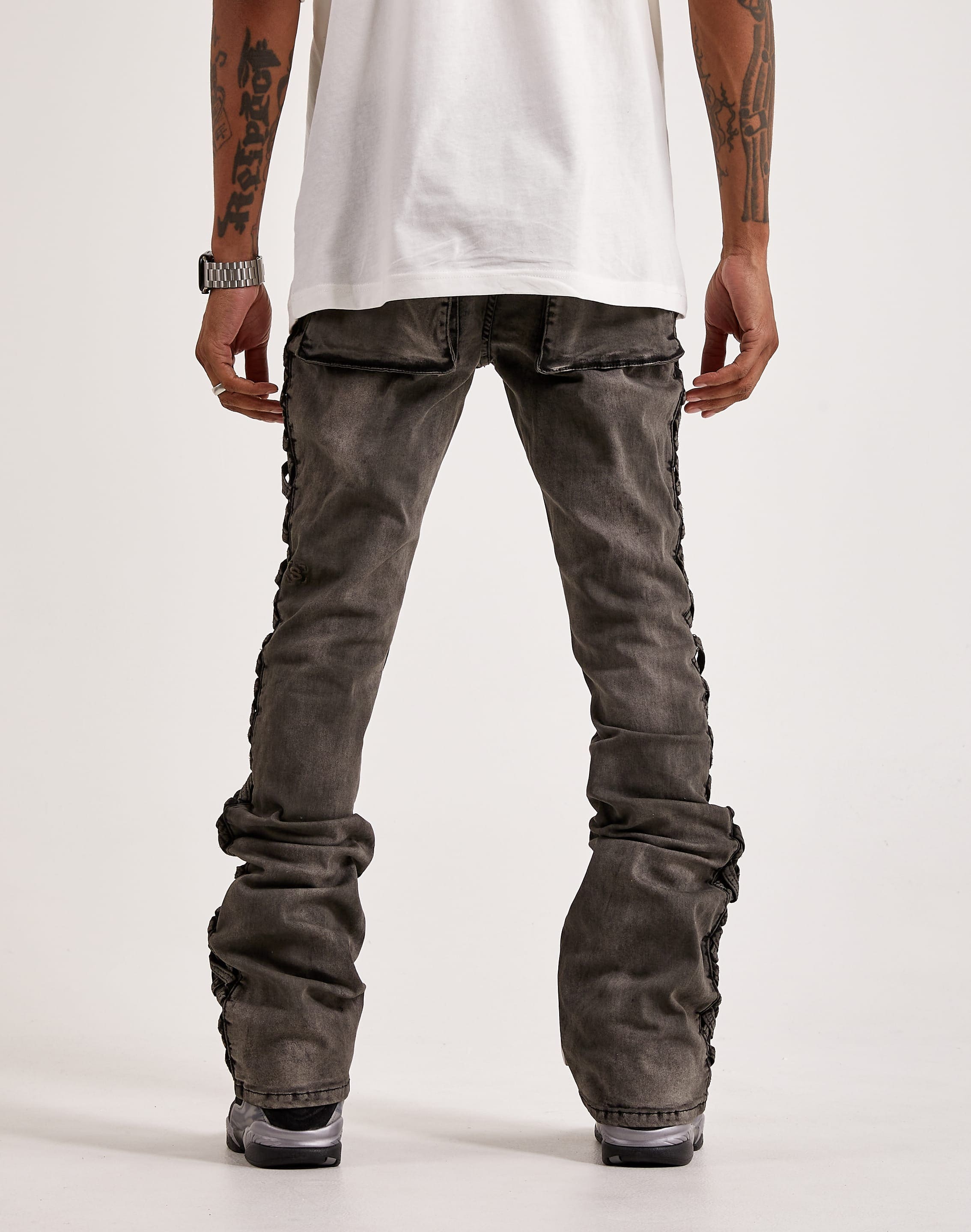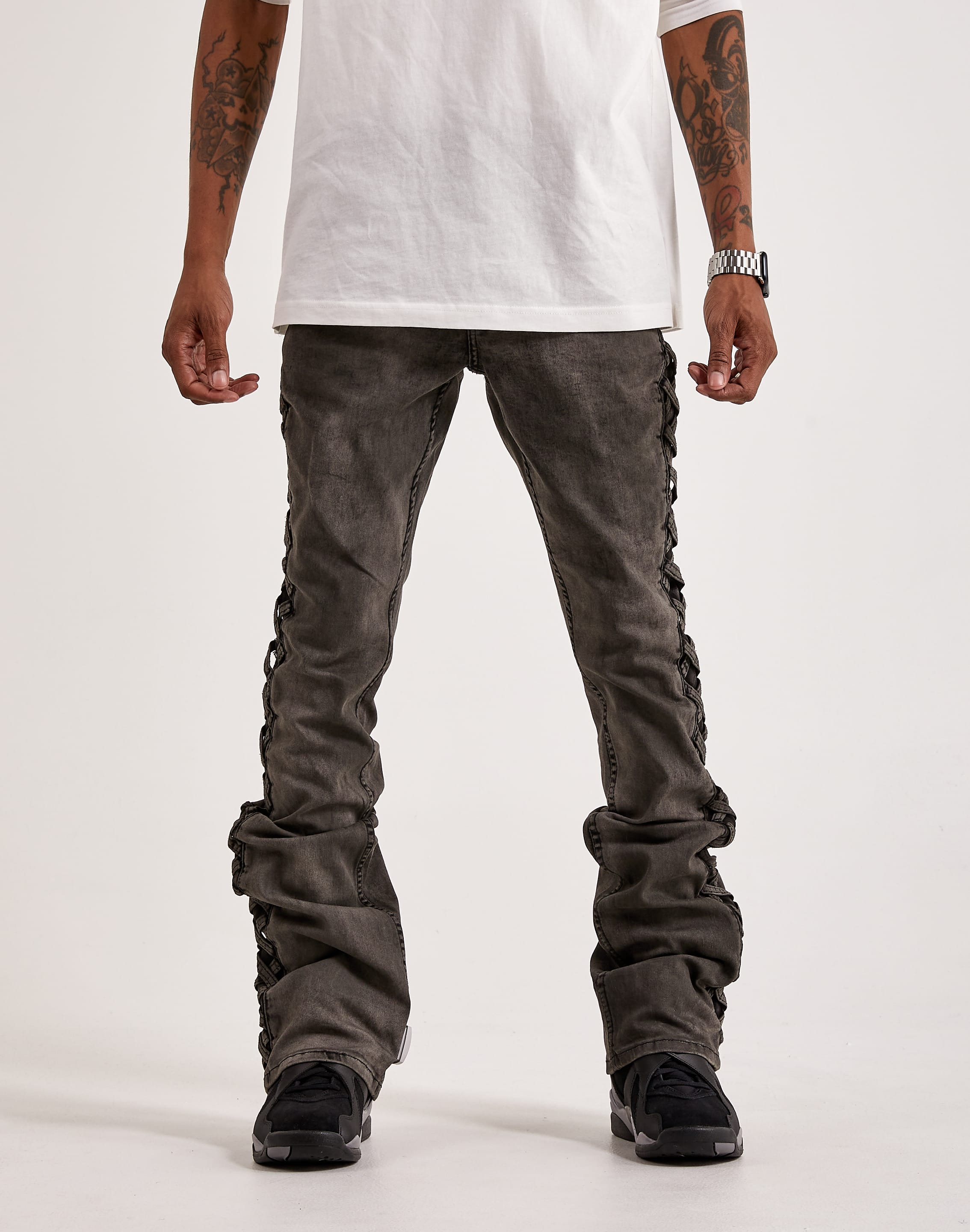Your jeans can make or break an outfit. With Serenede's River Stacked Jeans, you won't have to worry about the latter. These men's denim jeans are simple yet stylish, with distressing and side leg weave details.