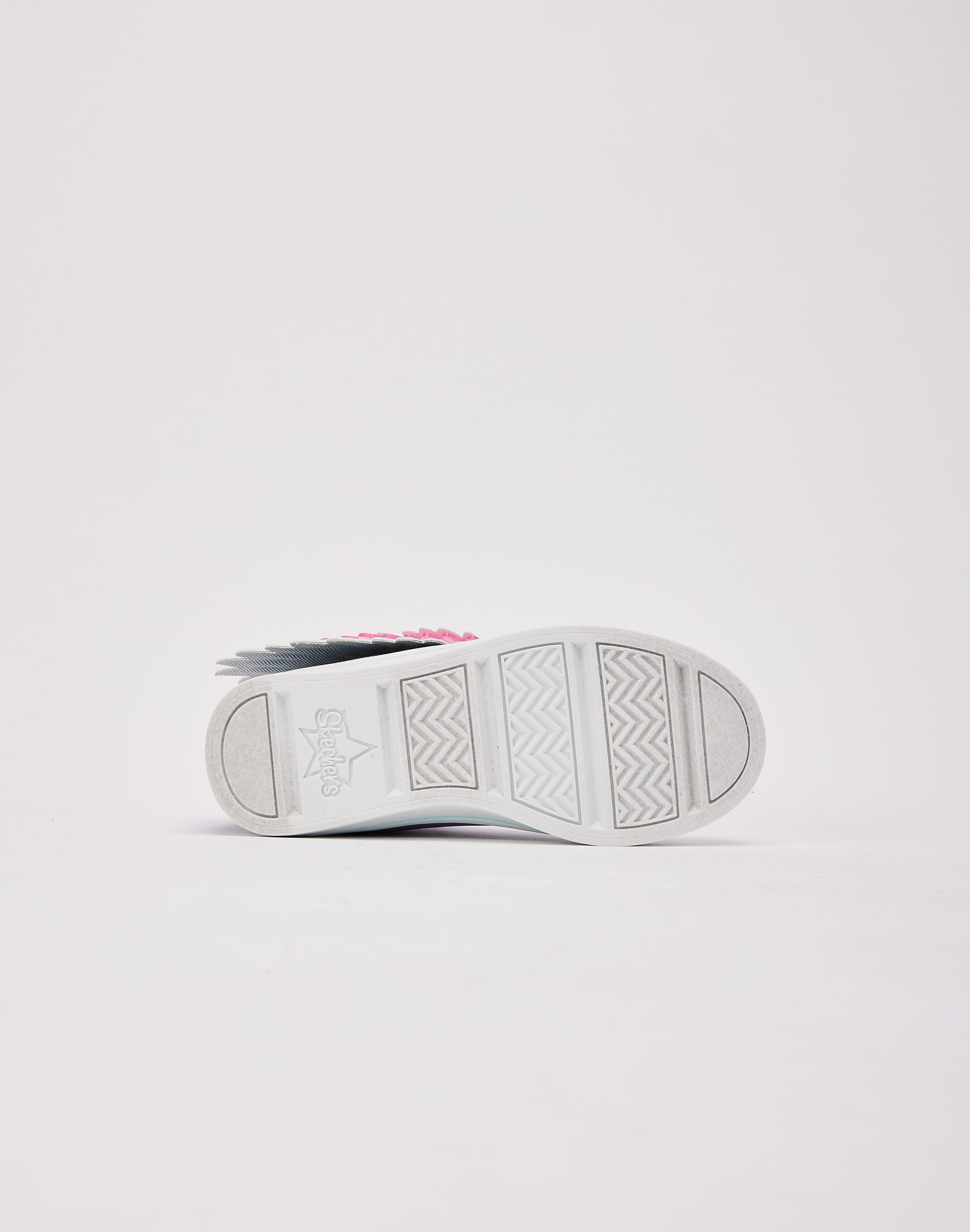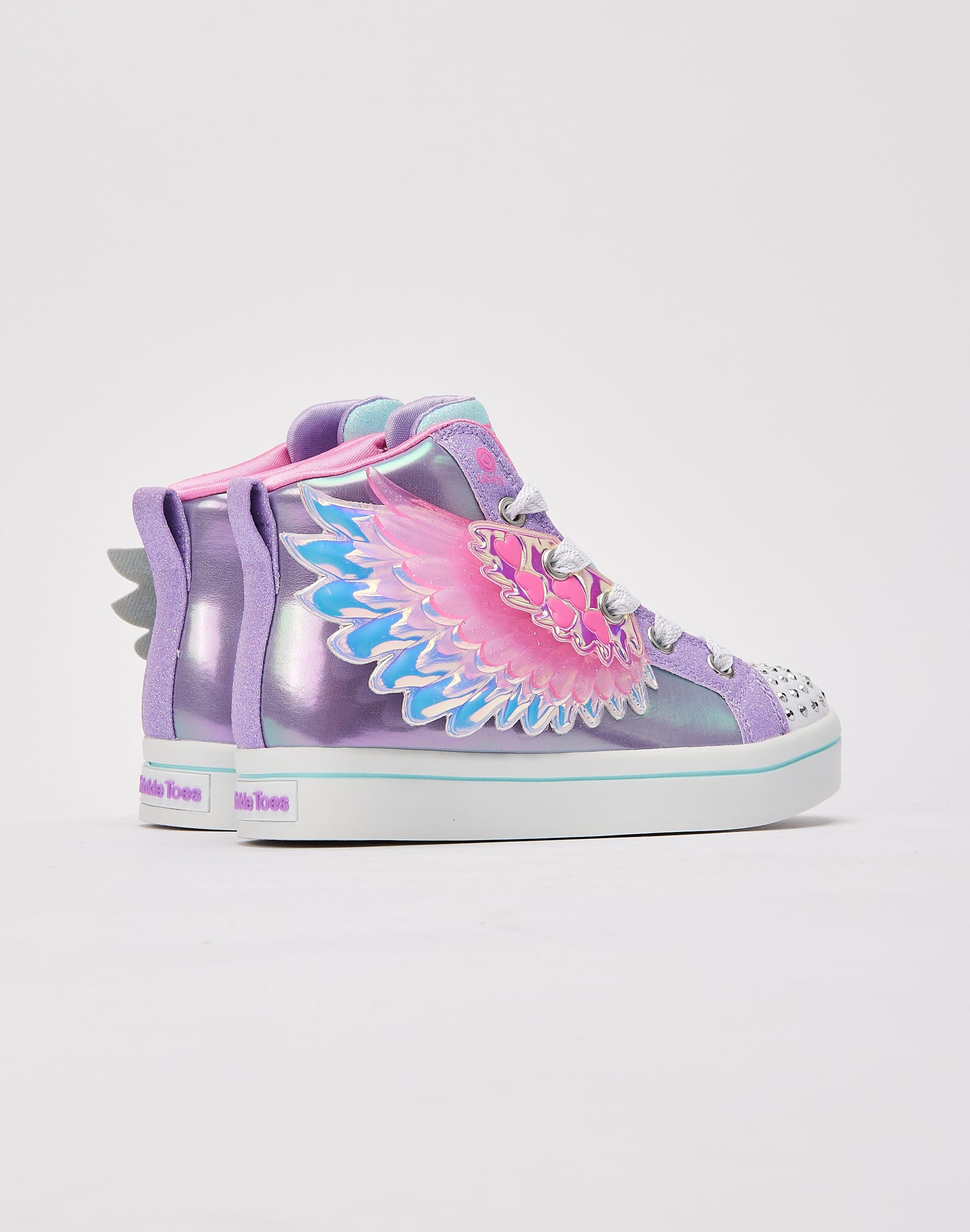 Add a touch of enchantment to your day by donning the Skechers Twi-Lites 2.0 Wingsical Wish shoes. These high-top lace-ups boast a shimmering synthetic exterior that sparkles with the magic of fairies.