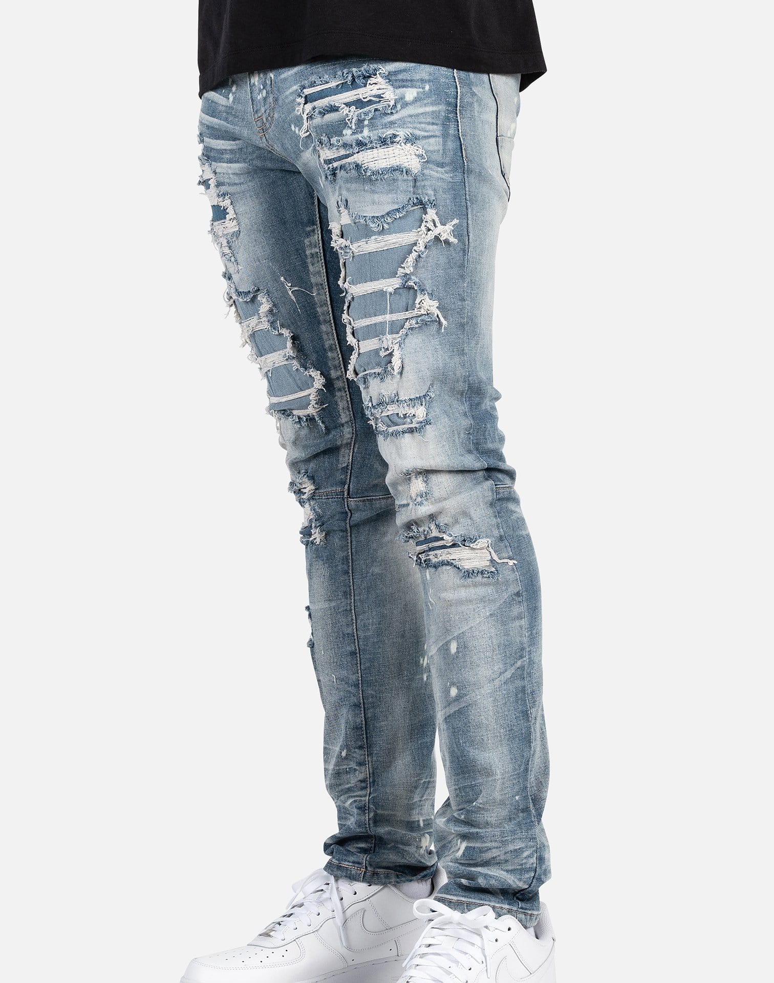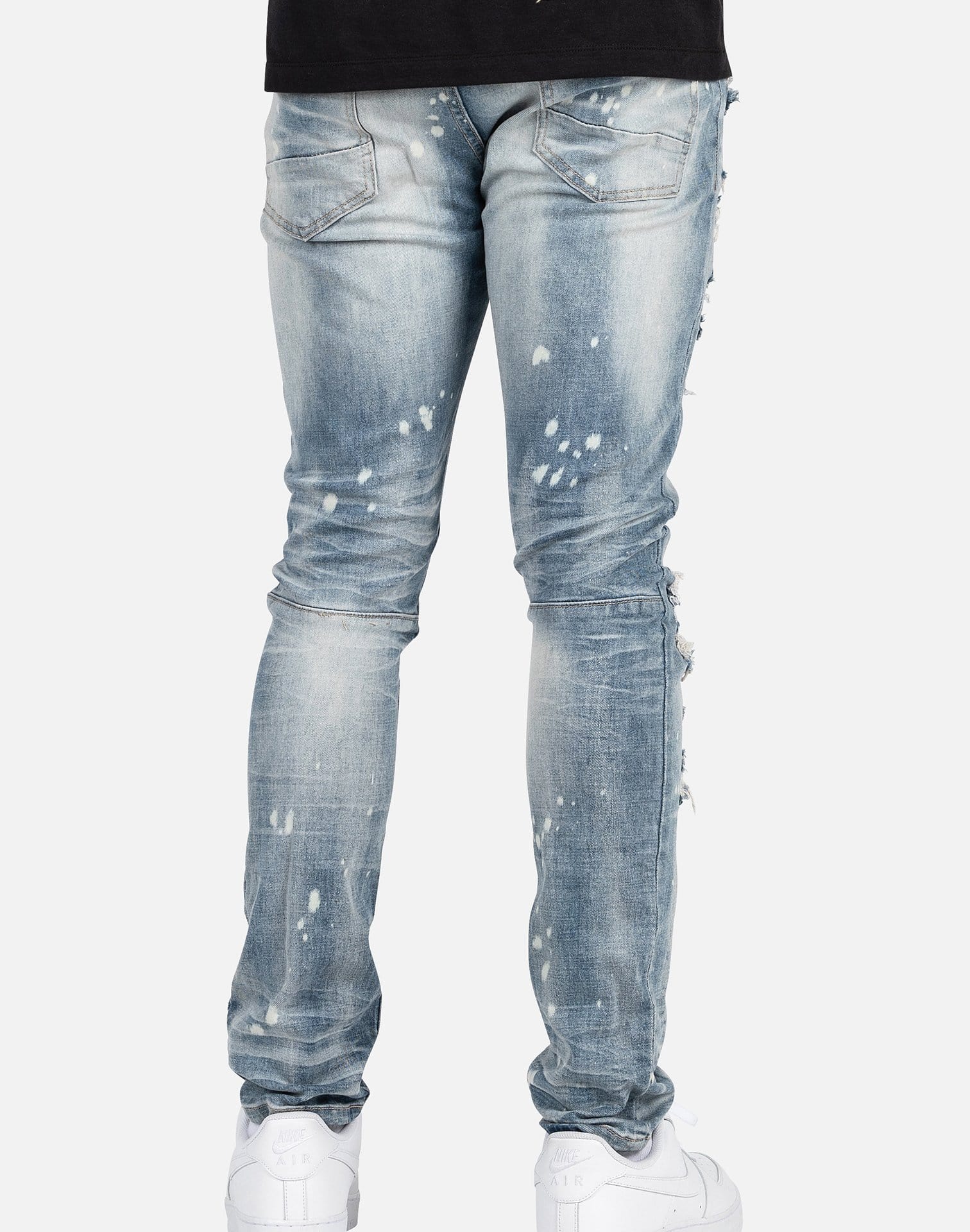 Smoke Rise is known for its edgy biker aesthetic and these Distressed Denim Jeans are no exception. Rock your pair with a simple graphic tee and your favorite statement kicks this season. These distressed ripped jeans feature custom distressing for a lived-in feel.