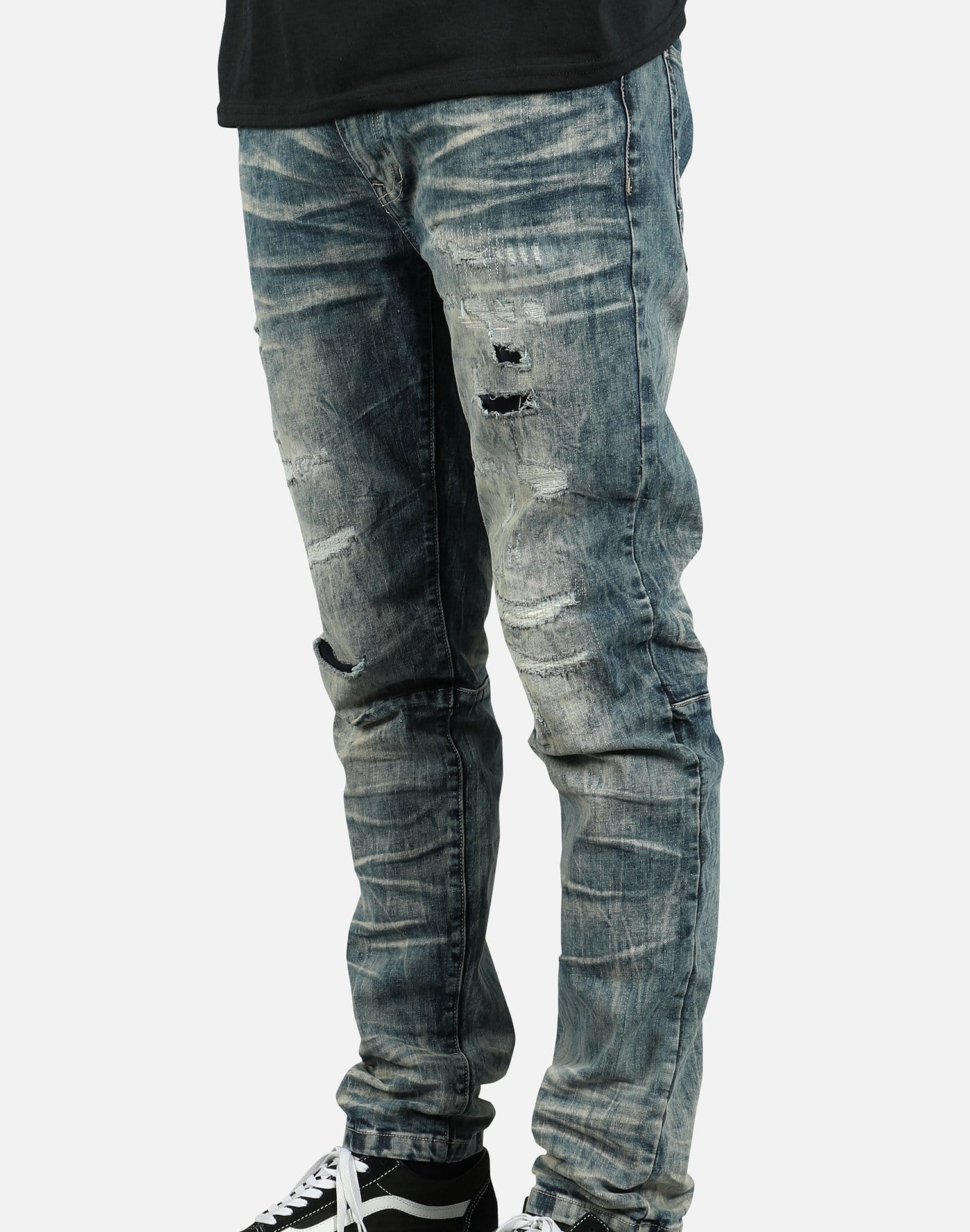 Smoke Rise is known for its edgy biker aesthetic and these Distressed Fashion Jeans are no exception. Rock your pair with a simple graphic tee and your favorite statement kicks this season. These distressed ripped jeans feature custom distressing for a lived-in feel.