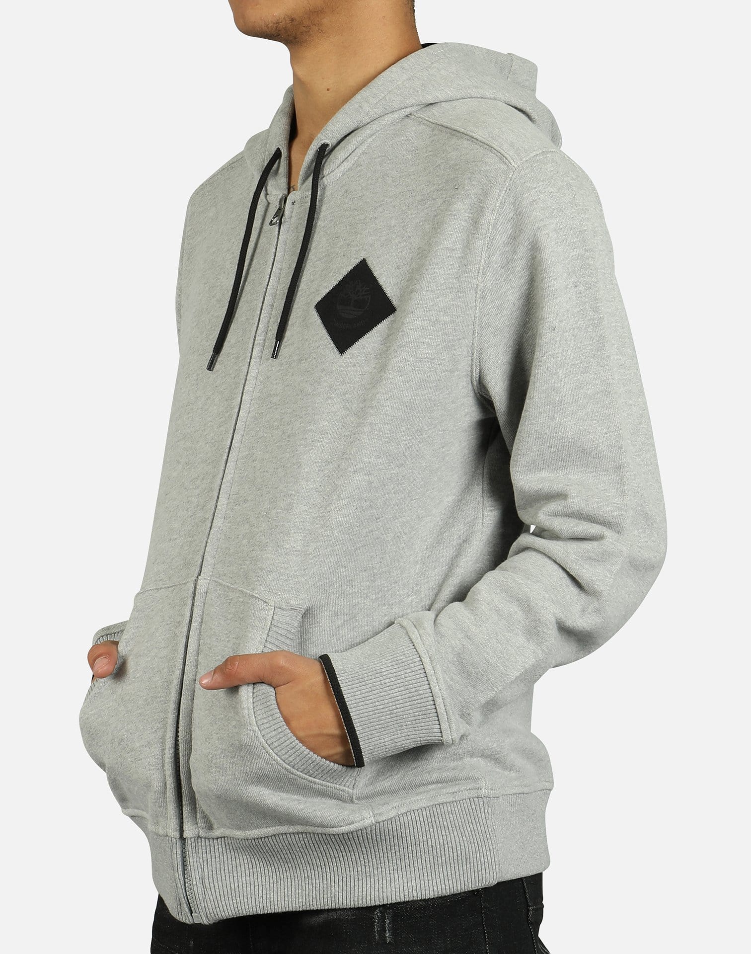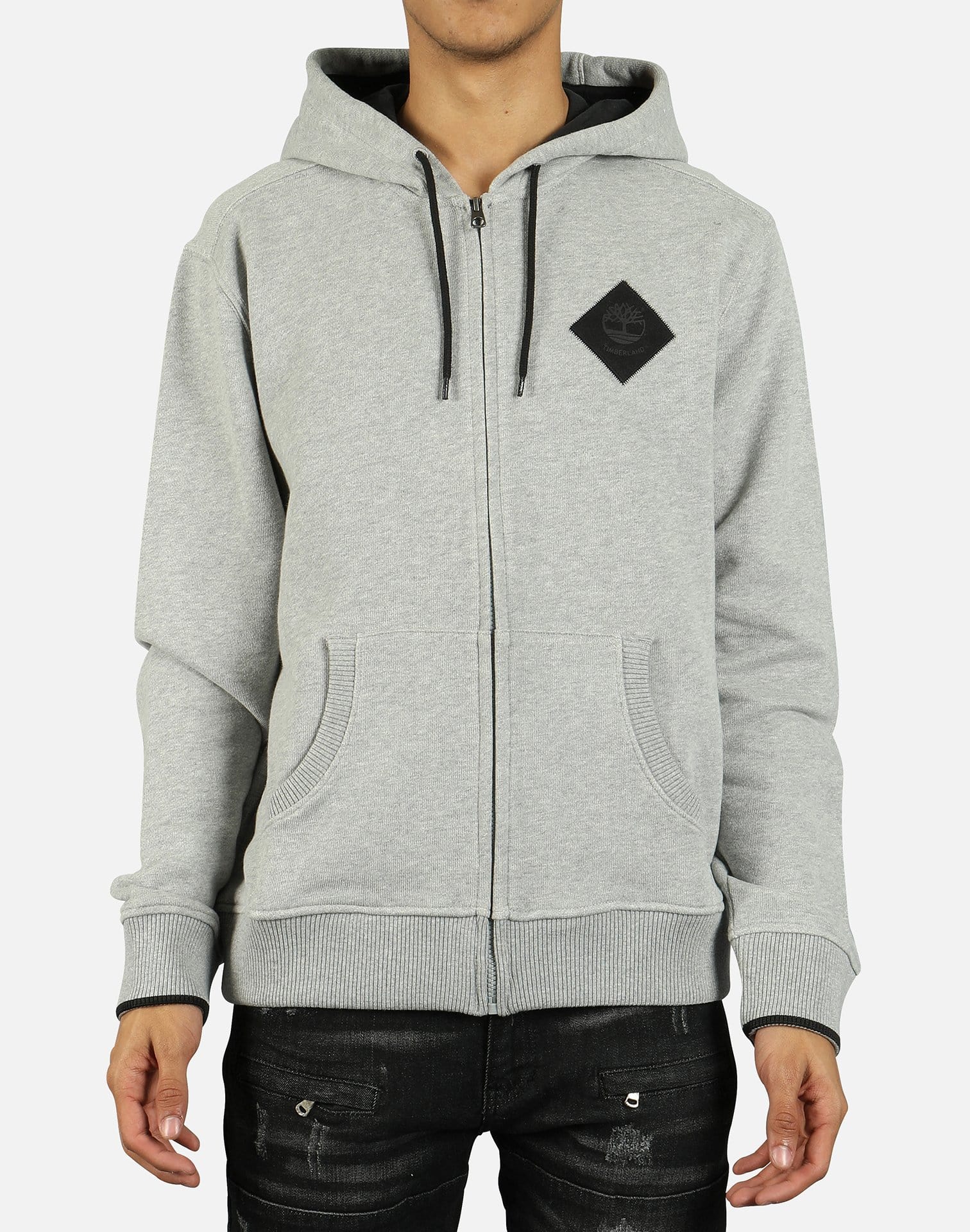 Rugged Timberland style is carried over in this full-zip hoodie. Features a boot-inspired hangtag, complete with the Timberland logo. Rugged metal zippers, contrasting hood, and underarm venting complete the look.