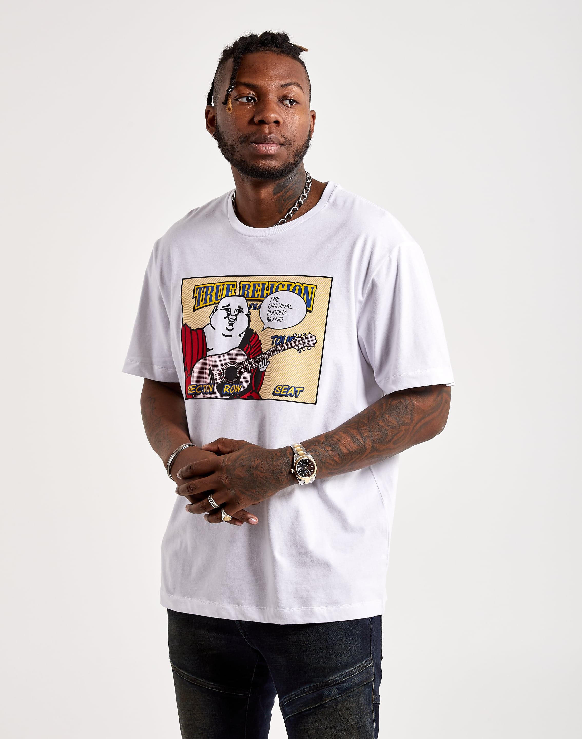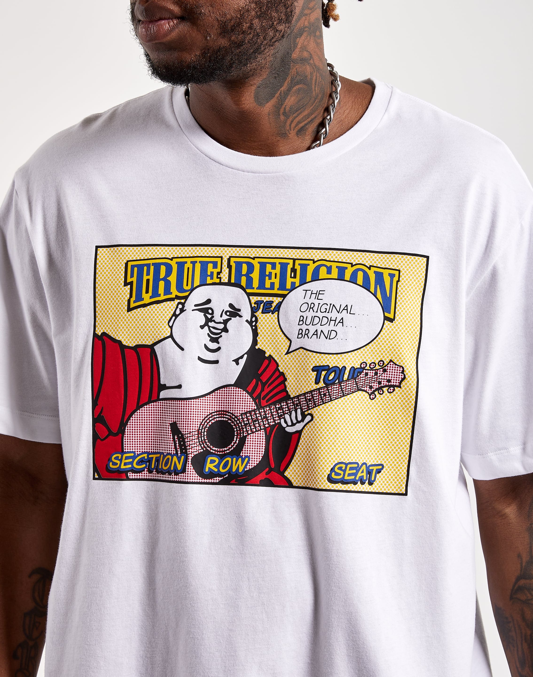 Designed from comfy 100% cotton, this short-sleeve men's t-shirt features a crewneck and our Comic Buddha design across the front.